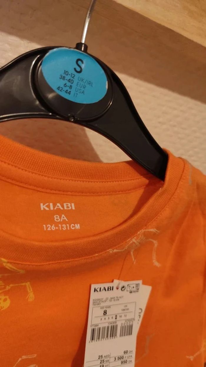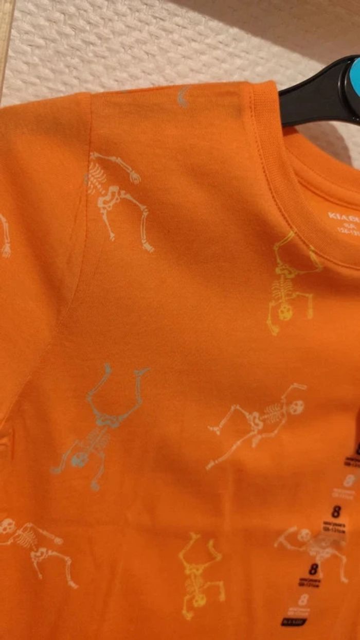 T-shirt orange, motif squelette, blanc, jaune et bleu Taille 8 ans, Kiabi Neuf avec étiquettes #tshirt #orange #squelette #blanc #bleu #blanc #8ans #kiabi #neuf #vickaria57_8ans