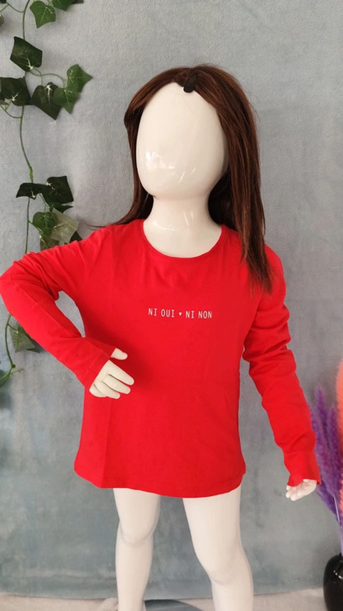 Pull fin rouge, écriture blanche "Ni oui, Ni non" Taille 8 ans (126-131cm), Kiabi Très bon état Matière : 100% coton bio #pull #fin #rouge #ecriture #blanc #8ans #kiabi #tresbonetat #coton #vickaria57_8ans