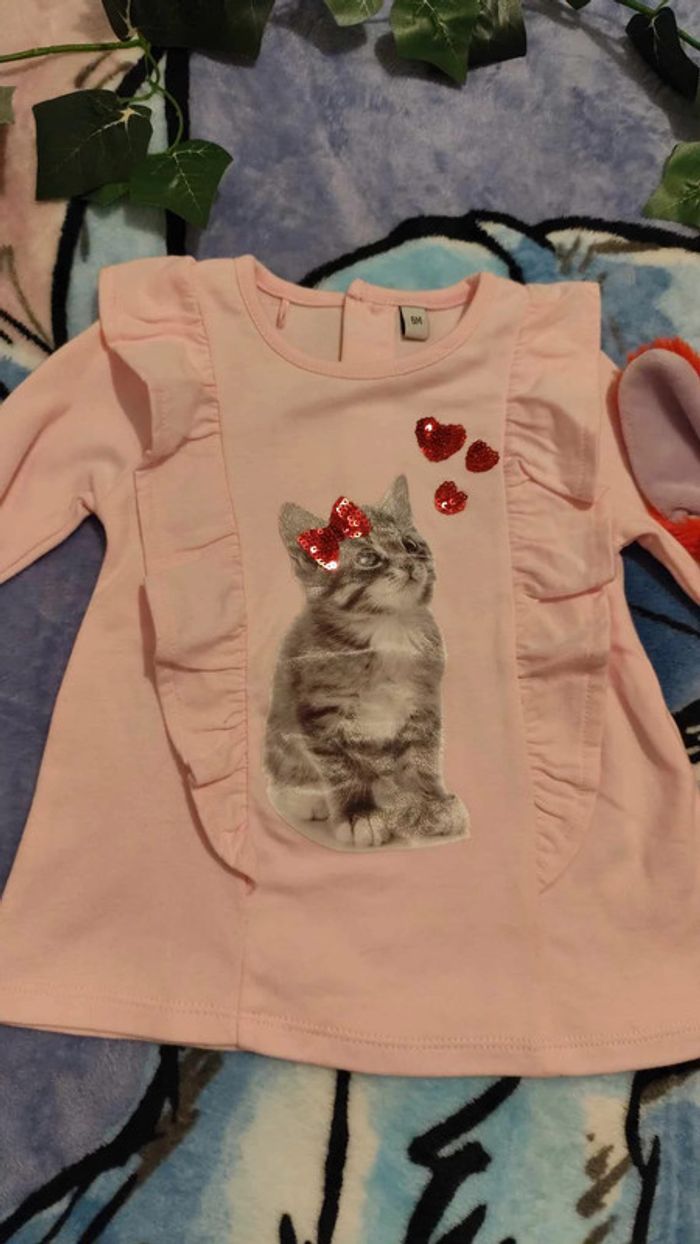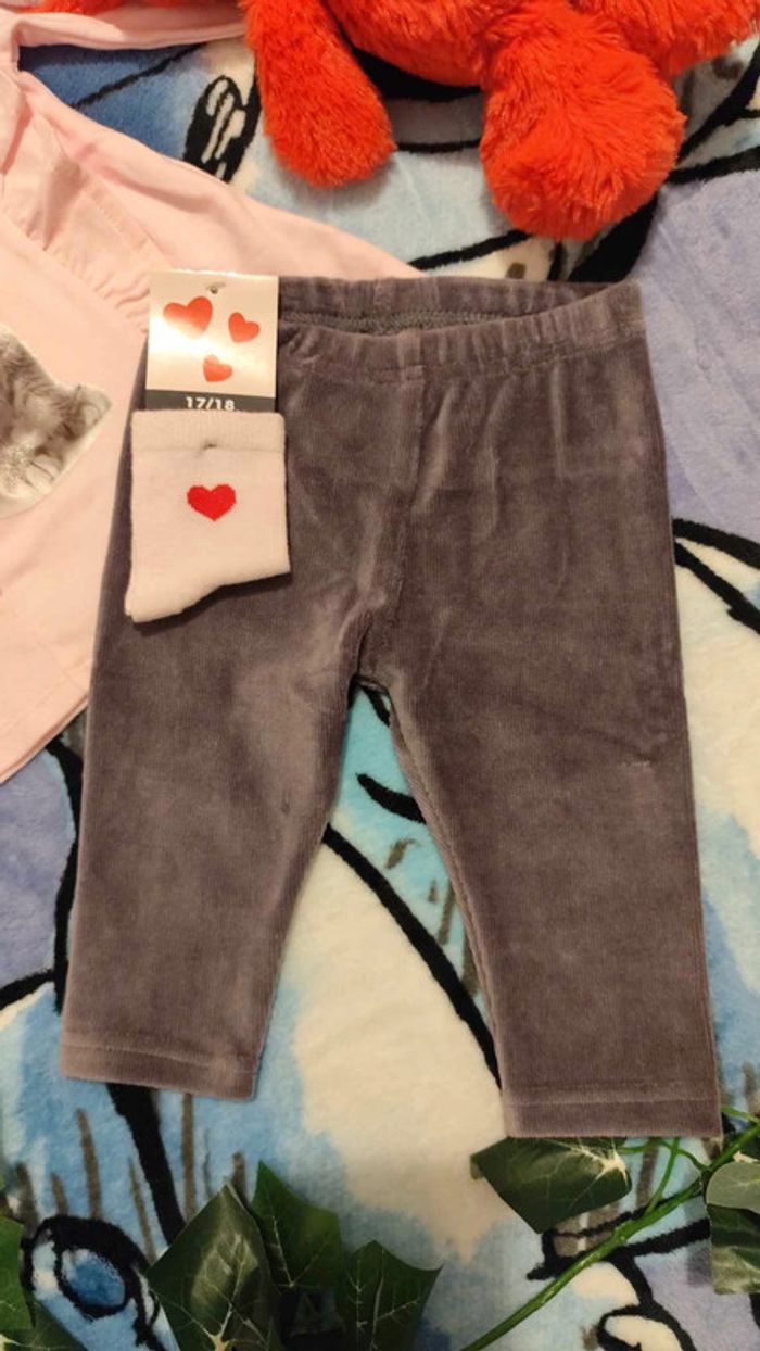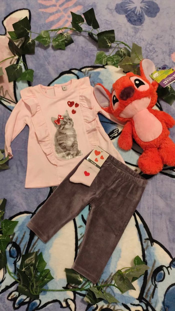 Ensemble bébé fille Pull rose, motif chat gris . Pantalon gris et sa paire de chaussettes roses. Taille 6 mois, les petits prix Matière : 60% coton, 40% polyester #pull #rose #ensemble #fille #pantalon #gris #chat #chaussette #6mois #lespetitsprix #coton #polyester #vickaria57_3_6_9mois