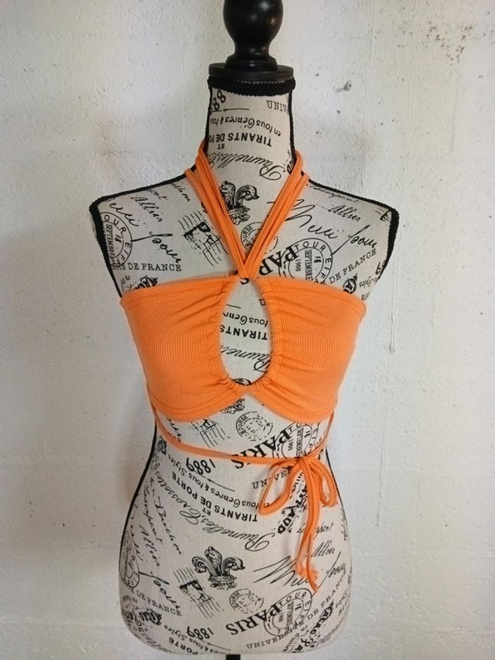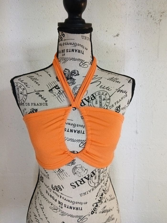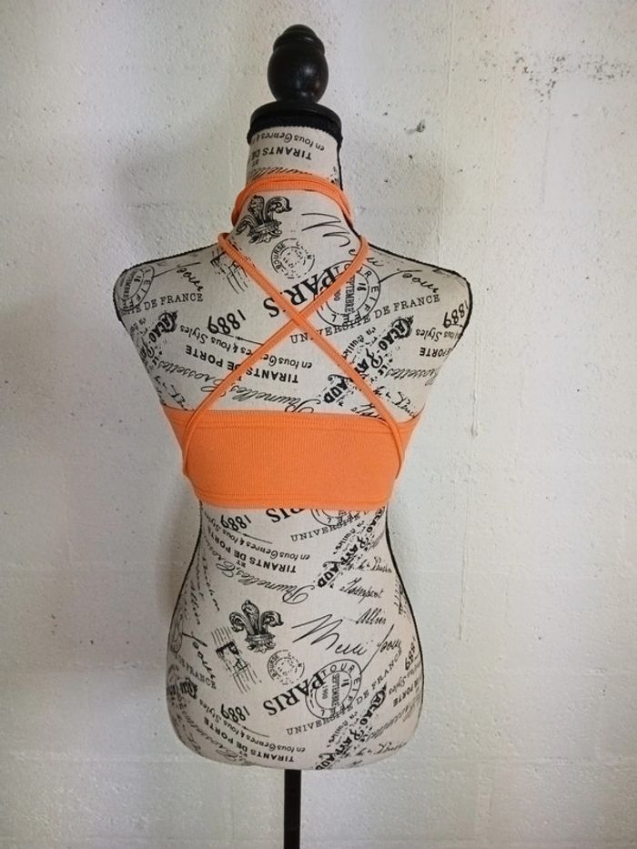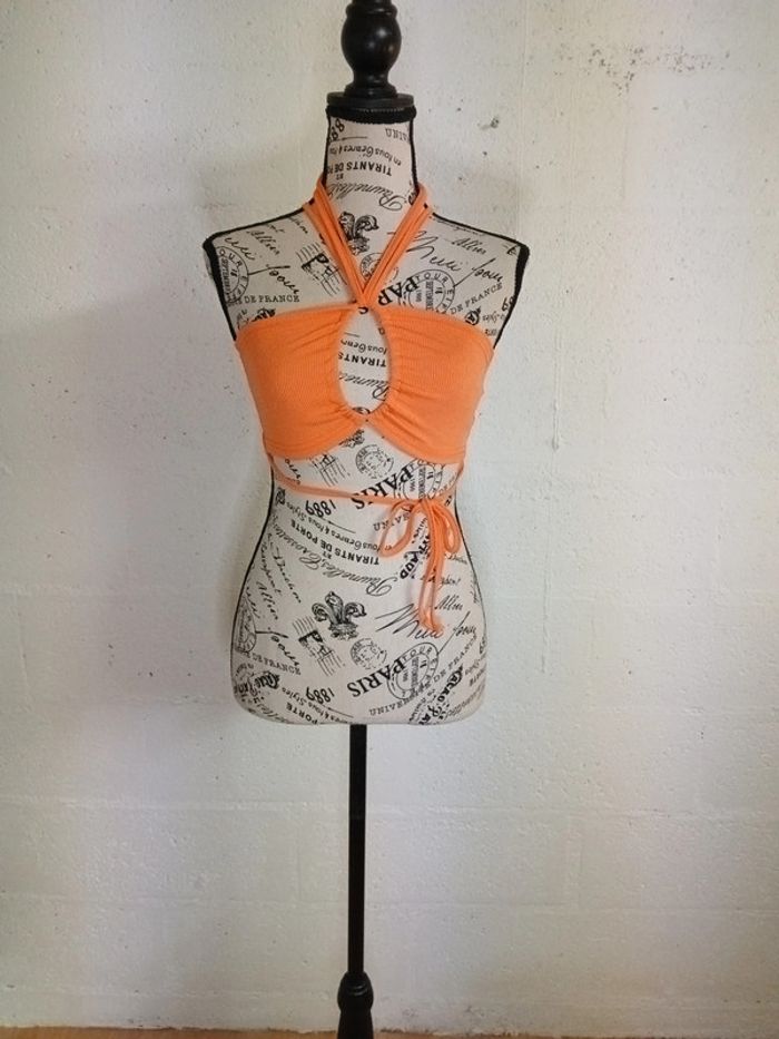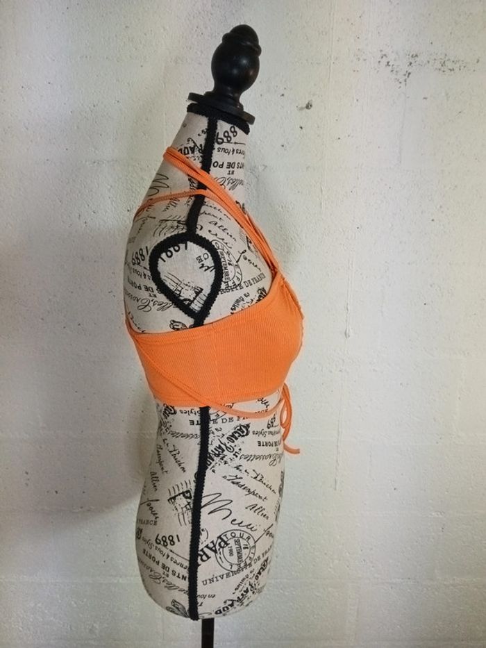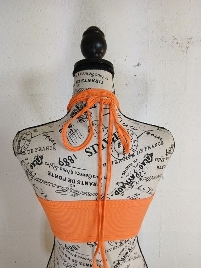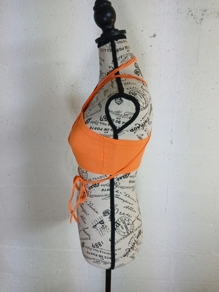Petit bandeau orange ouvert devant et fermeture avec liens les liens sont très longs et permettent de les nouer comme vous le souhaitez Taille S