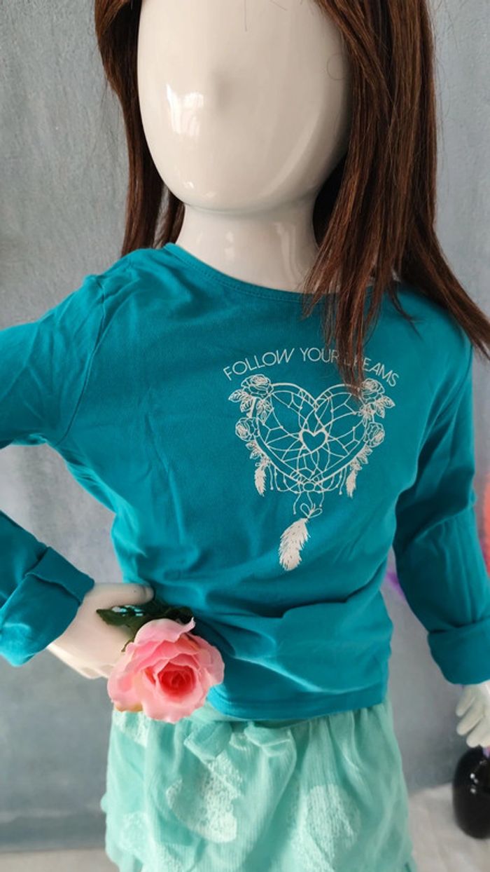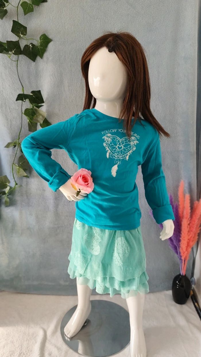 Ensemble pull fin bleu, motif attrape rêves en coeur ❤️ blanc Taille 10 ans (140cm), in extenso Très bon état Jupe bleu Taille 10 ans, Gémo #pull #fin #bleu #attrapereve #blanc #coeur #10ans #tresbonetat #inextenso #vickaria57_10ans