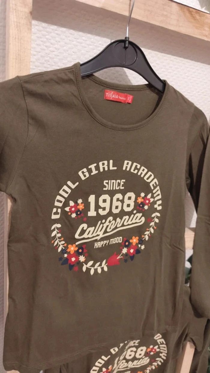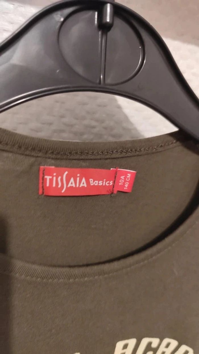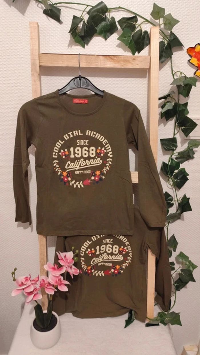 Lot de deux pulls fin Kaki, écriture blanche Taille 10 ans (140cm), Tissaia Très bon état Matière : 100% cotton #lot #pull #fin #kaki #blanc #10ans #tissaia #tresbonetat #cotton #vickaria57_10ans