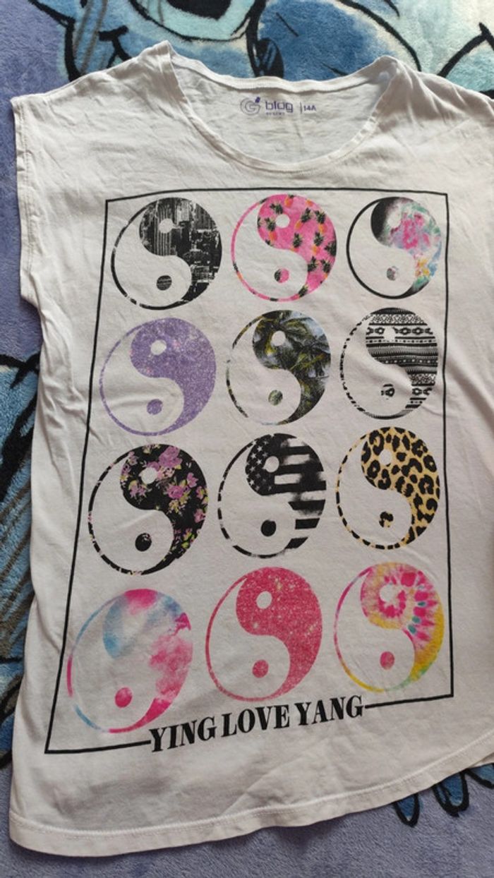T-shirt blanc, ying love yang Taille 14 ans, Gémo #tshirt #blanc #yingyang #love #gemo #14ans #vickaria57_14ans