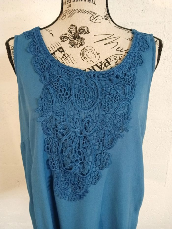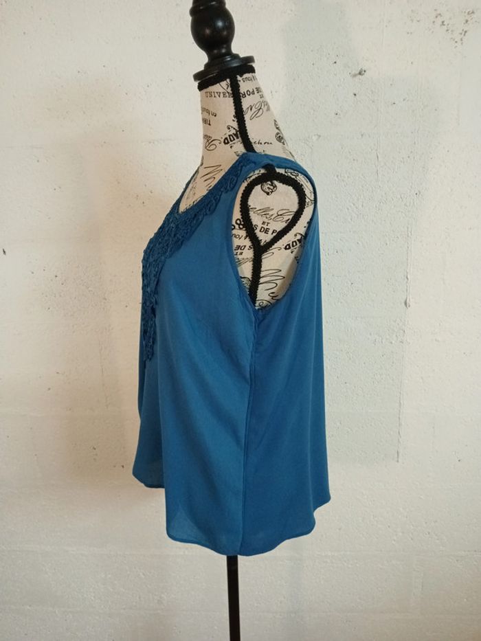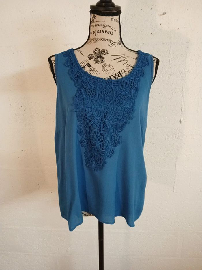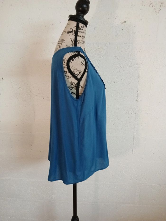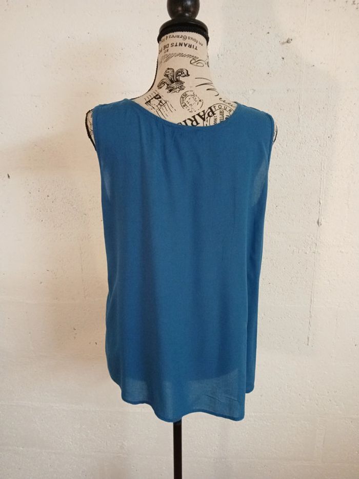 débardeur fluide couleur bleue marque ESMARA bon état taille 44 largeur aisselles 50 cm longueur dos 65 cm étiquette matière a été coupée 🌈 Pensez au lot afin de limiter les frais de port mais aussi pour faire des économies car les réductions sont actives dès 2 articles 😍 🌈