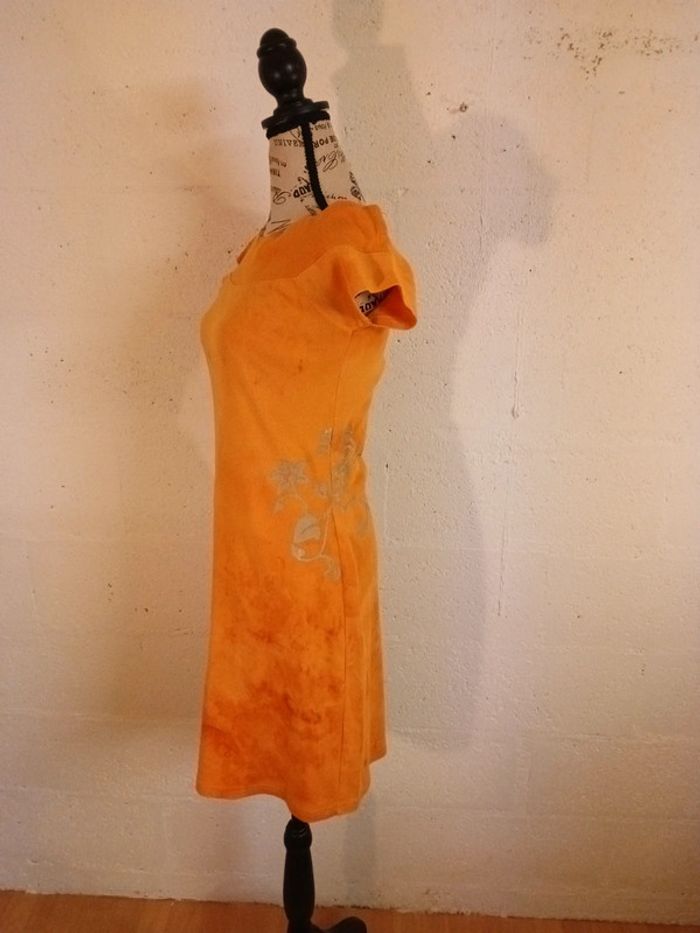 Robe orange 100% coton Col bateau Portee souvent, état satisfaisant Taille 40 Marque KIABI largeur aisselles 39 cm longueur 90 cm 🌈 Pensez au lot afin de limiter les frais de port mais aussi pour faire des économies car les réductions sont actives dès 2 articles 😍 🌈