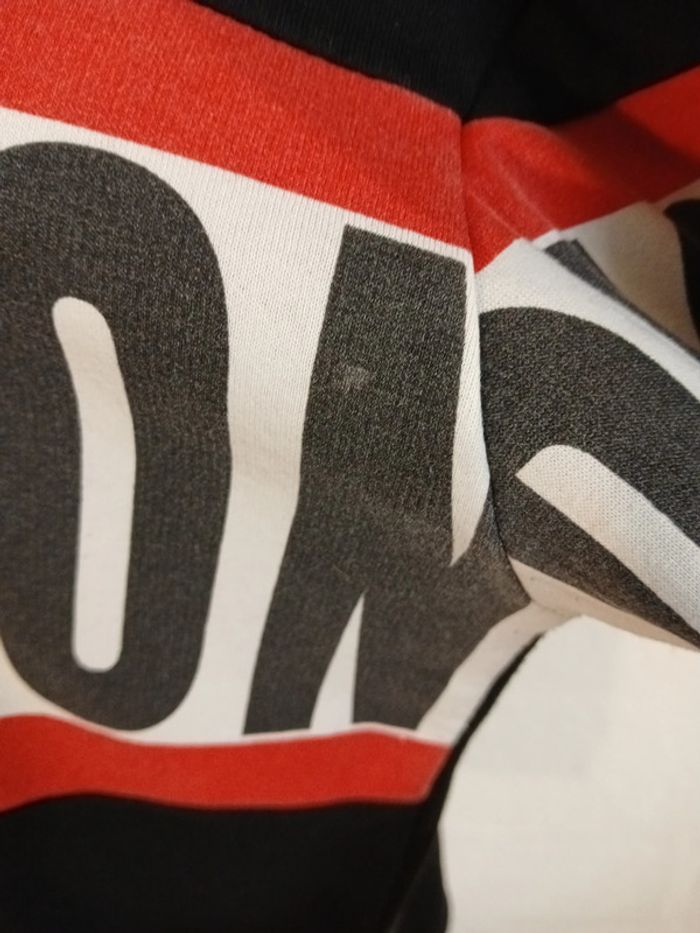Sweat noir avec bandeau rouge et blanc marque JENNYFER Taille XS mais coupe très large état satisfaisant car porté souvent largeur aisselles 58 cm longueur dos 75 cm 🌈 Pensez au lot afin de limiter les frais de port mais aussi pour faire des économies car les réductions sont actives dès 2 articles 😍 🌈