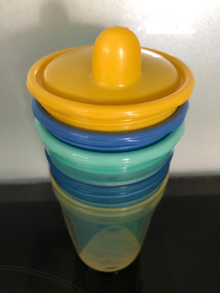 Lot de 3 gobelets dont 2 avec bec. Les bouchons se vissent. Neuf sans étiquette