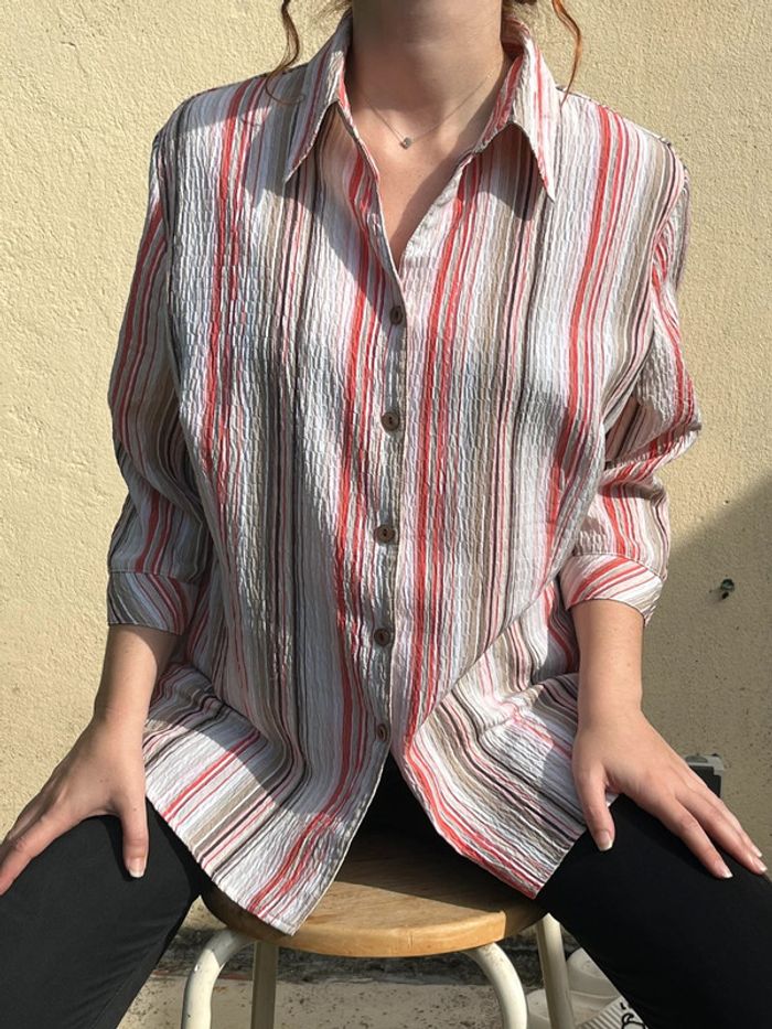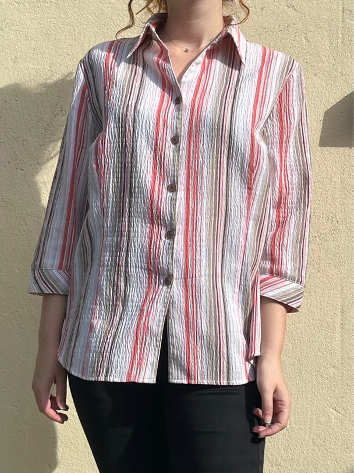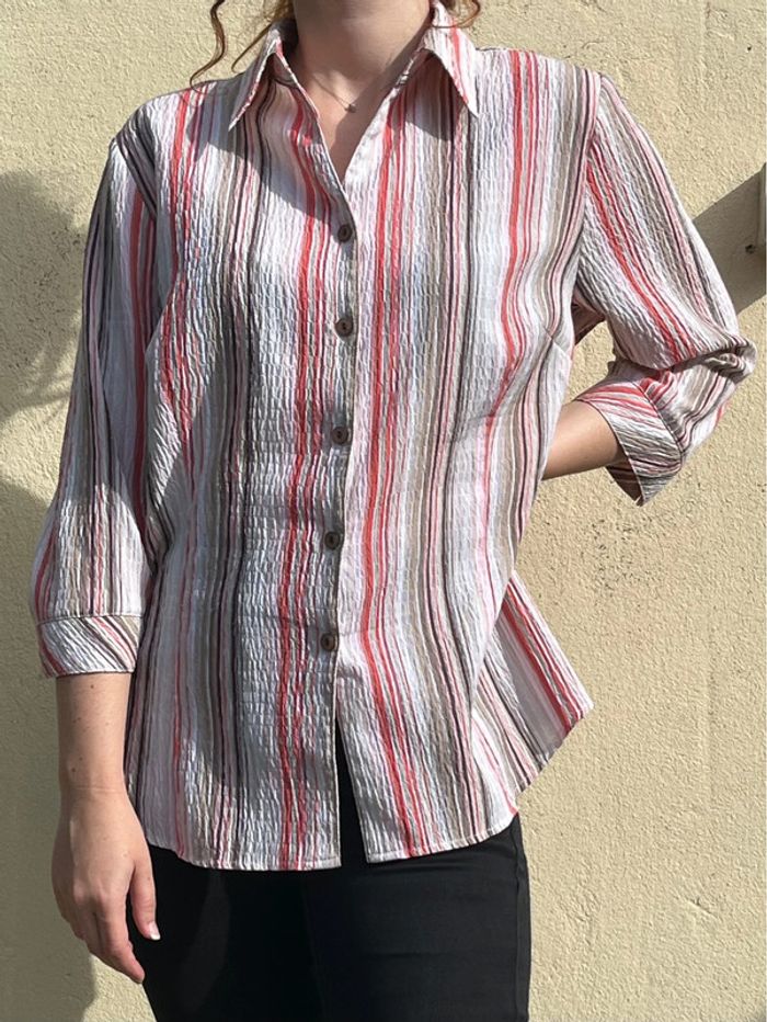 Chemise manches 3/4 tissu plissé - bandes verticales coloré