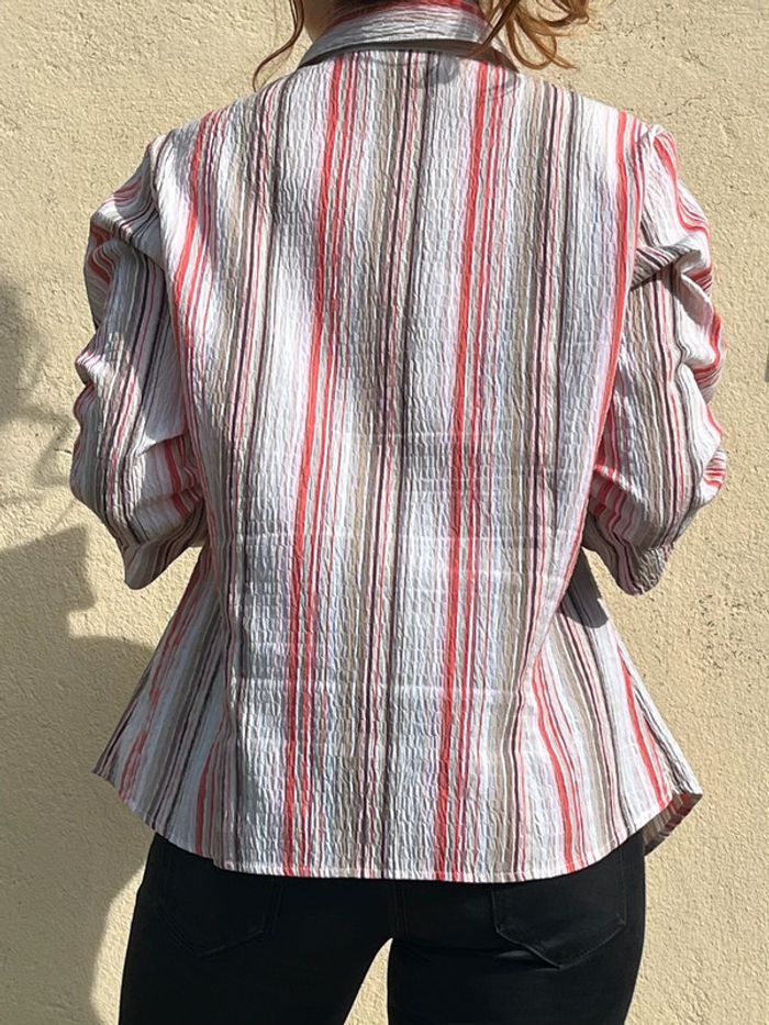 Chemise manches 3/4 tissu plissé - bandes verticales coloré - photo numéro 1