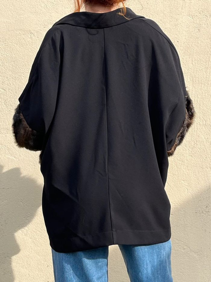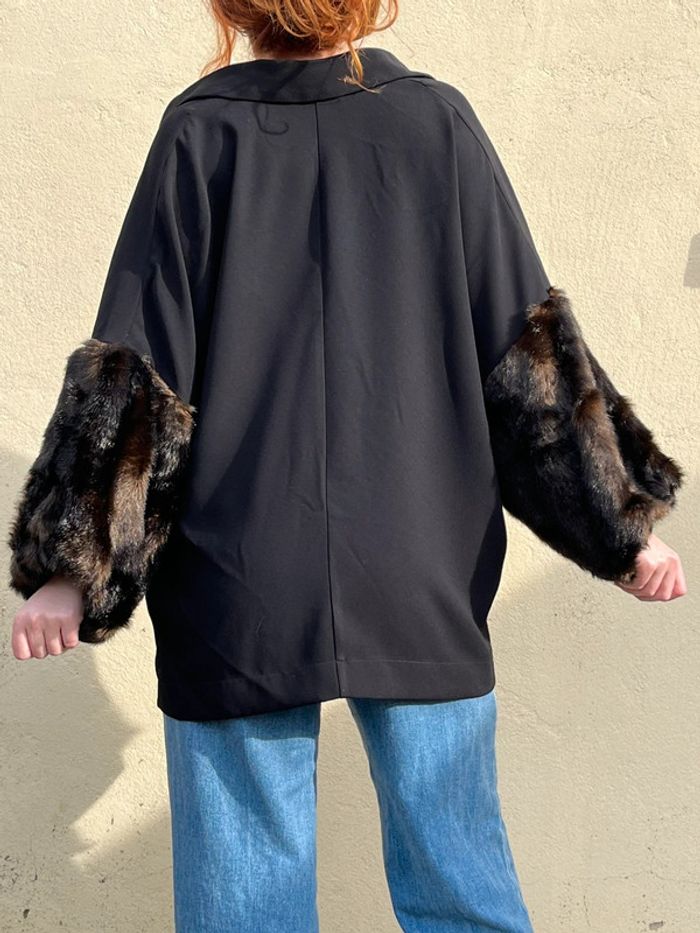 Blouse manches 3/4 avec fausses fourrures - noir et marron - photo numéro 4