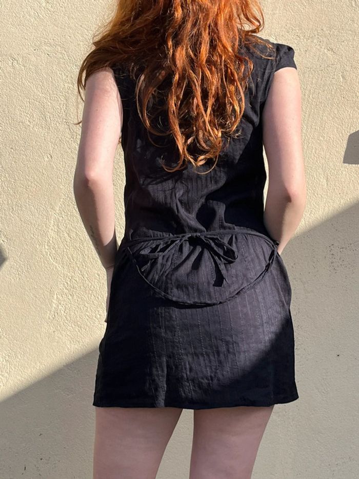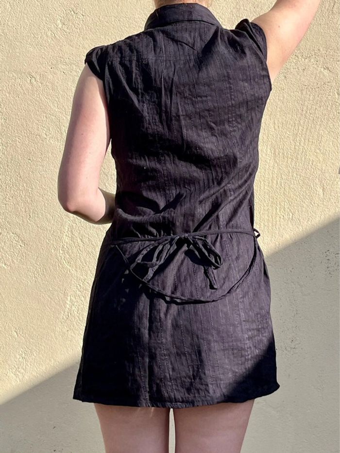 Robe courte avec ficelles et col chemise 100% coton - noir - photo numéro 5