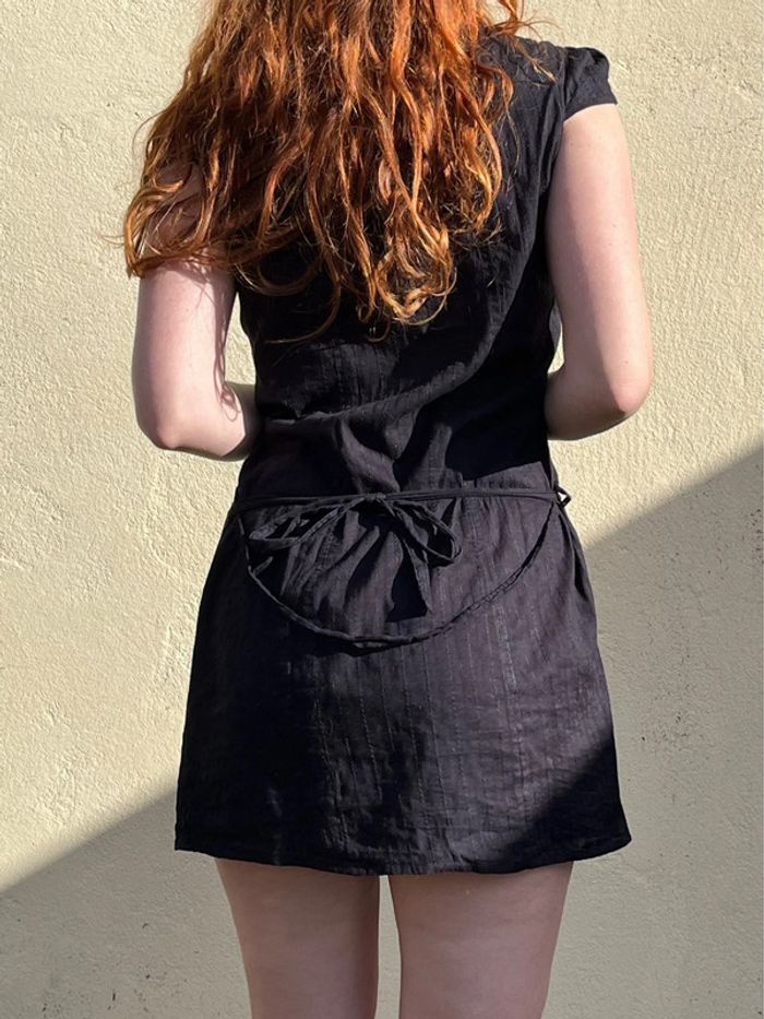 Robe courte avec ficelles et col chemise 100% coton - noir - photo numéro 8