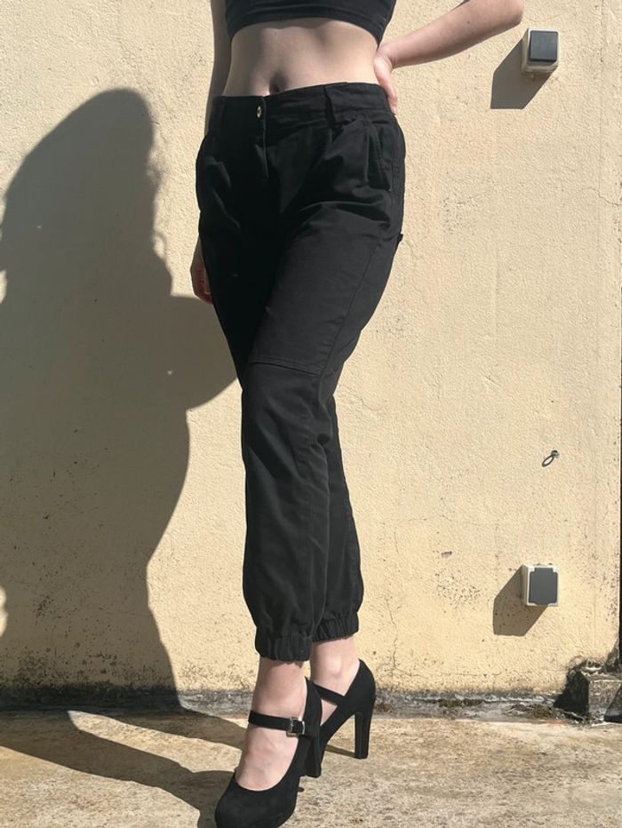 Pantalon cargo taille haute et resserré aux chevilles - noir - photo numéro 2