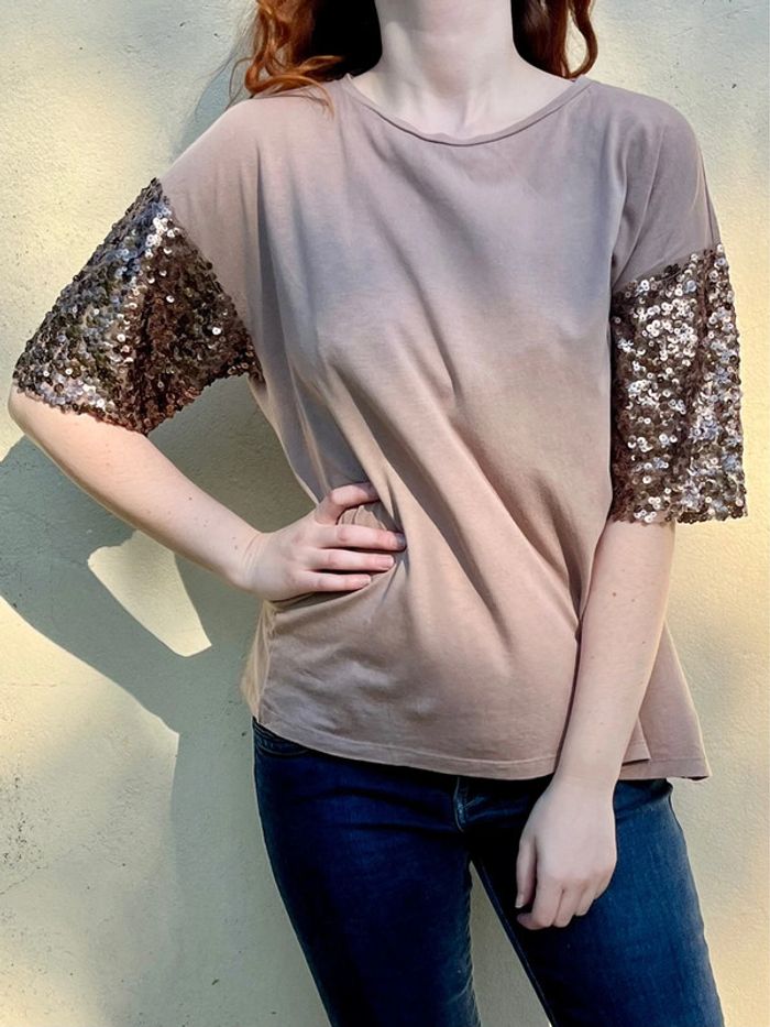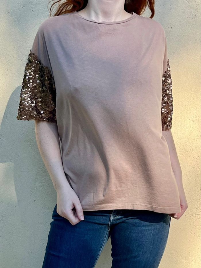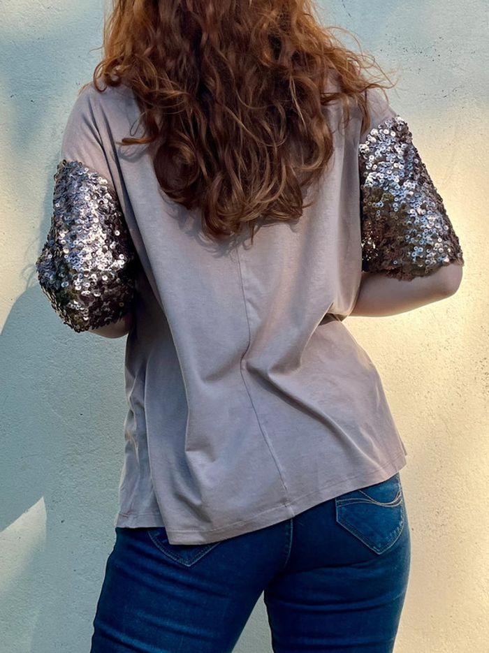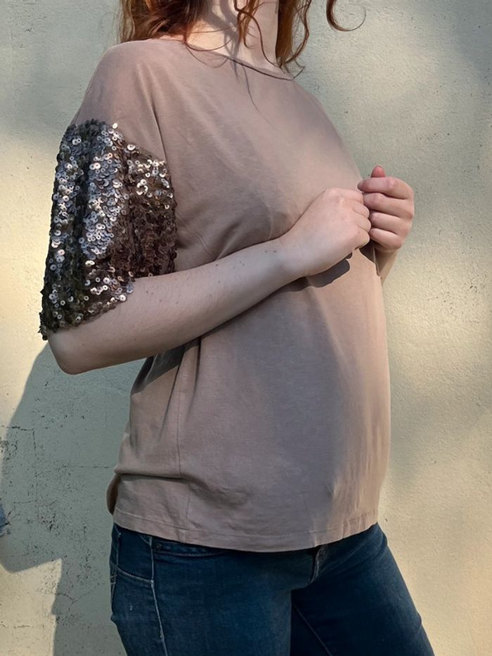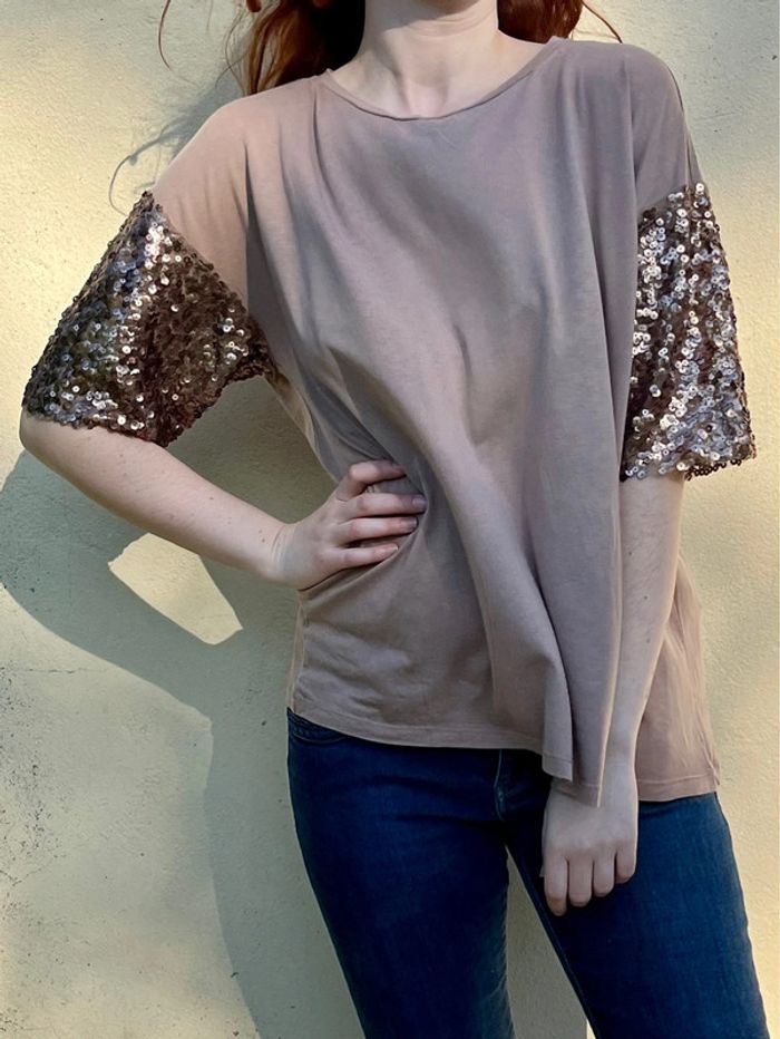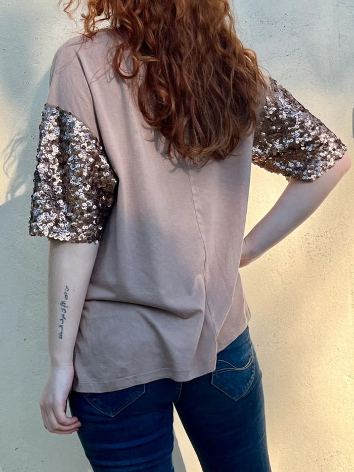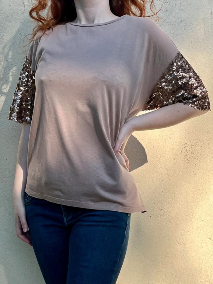 T-shirt ample avec manches sequins - marron - photo numéro 1