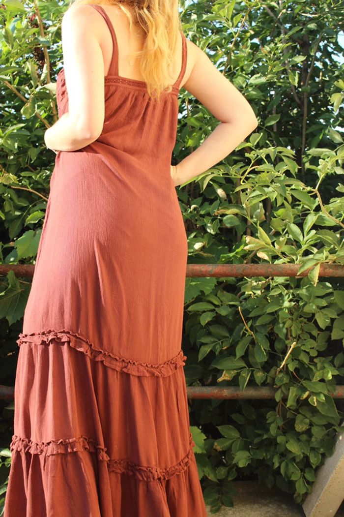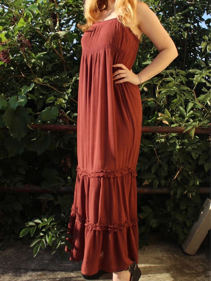 Robe doublée (doublure jusqu’au dessus du genoux environ) - Taille 36 (S) (Je fais 1m69 je porte entre du S et du M) Il y’a encore les ficelles pour l’accrocher sur un cintre. Ayant grossit, elle me serre au niveau de la poitrine Neuve, jamais portée