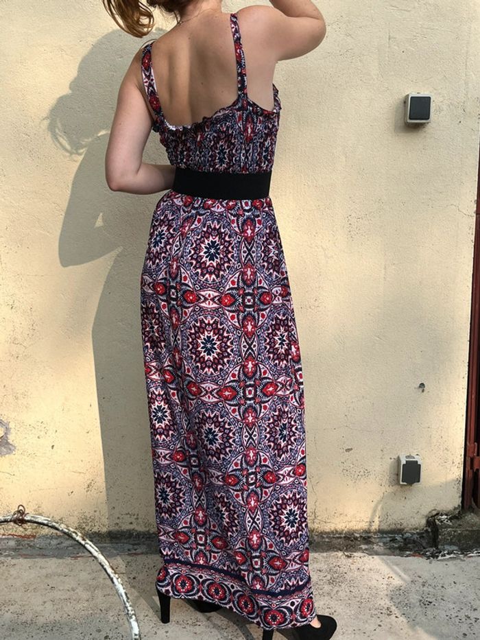 Robe longue à motifs géométriques rouge et bleu - photo numéro 3