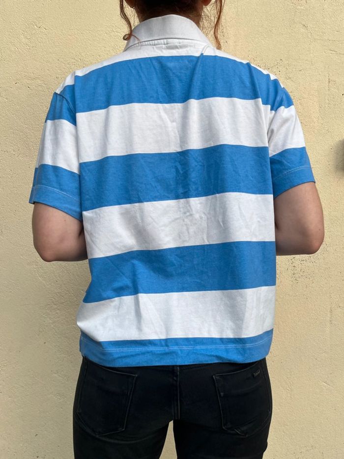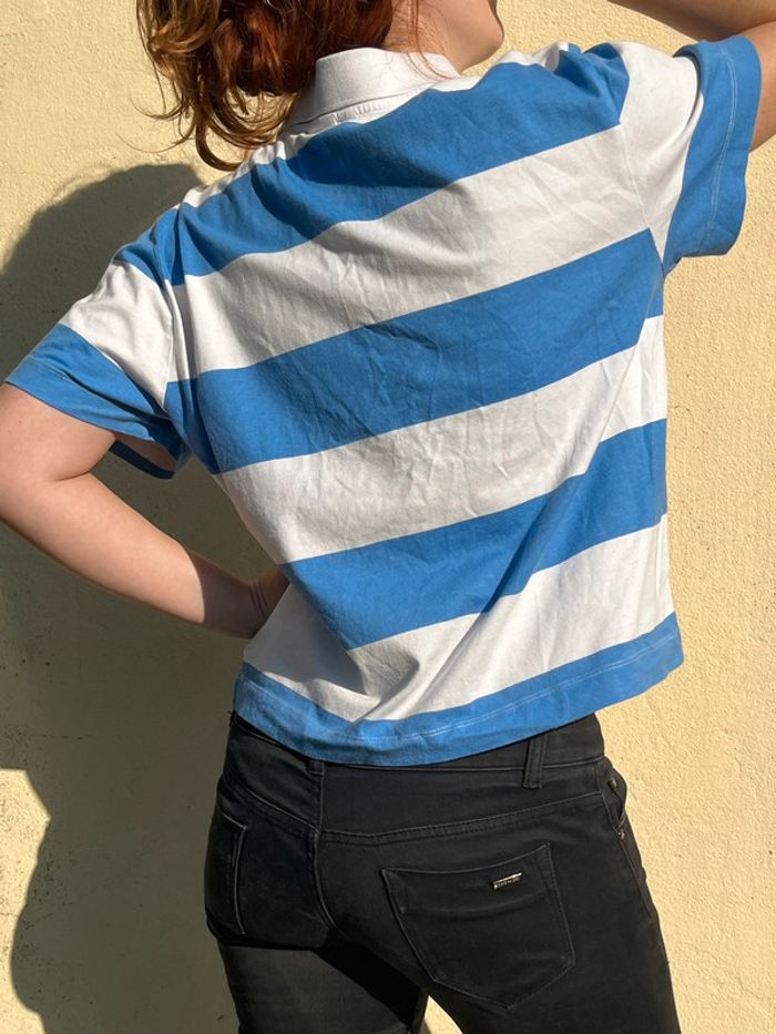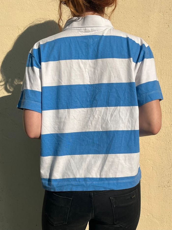 Haut polo avec boutons - bandes blanche et bleu clair - photo numéro 8