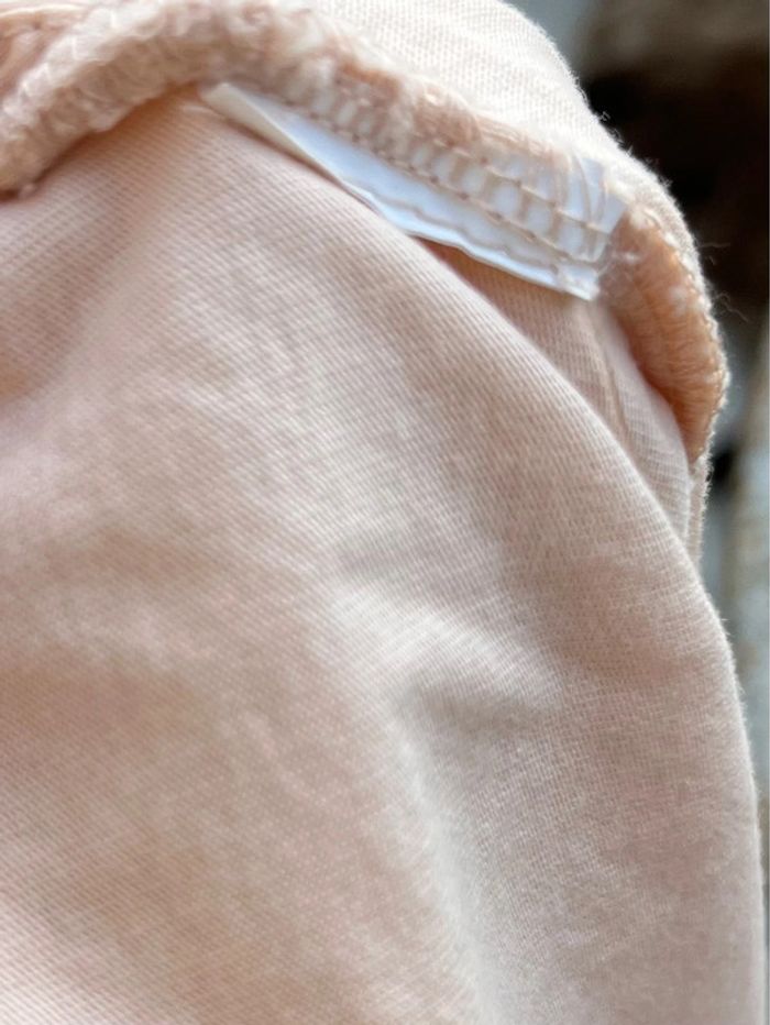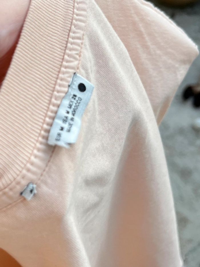 Haut court crop top ample sans manches type débardeur avec épaulettes - col rond - couleur beige crème vers le saumon. Taille M (je porte du S/M, taille tres bien) Marque : Zara collection women (rond) Étiquette à moitié coupé et étiquette des matières coupées (je pense c’est du coton). Excellent état, pas de signe d’usure. Porté très peu (moins de 5x)