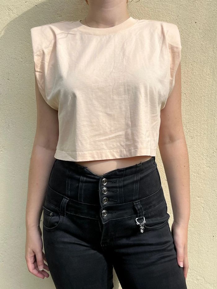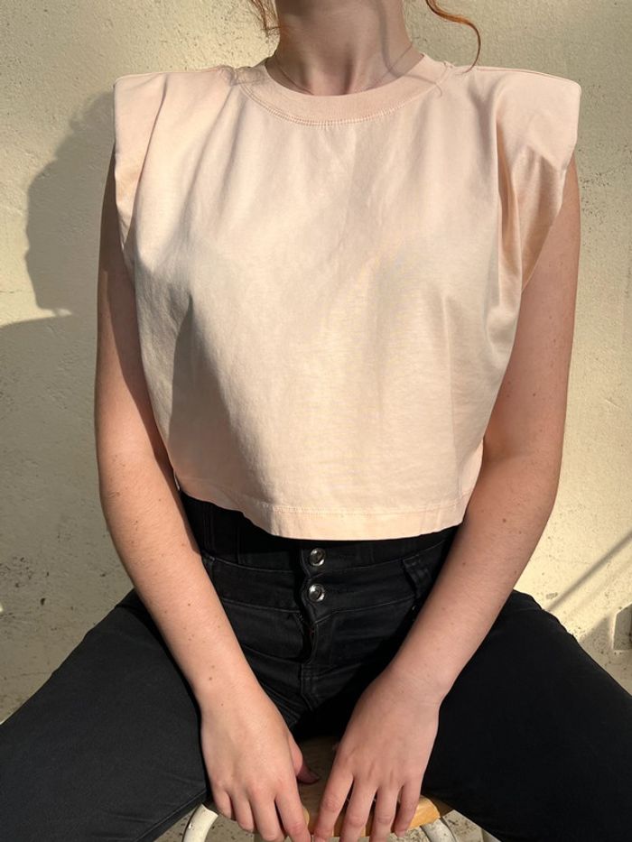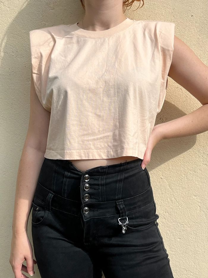 Crop top beige saumon avec épaulettes - photo numéro 7