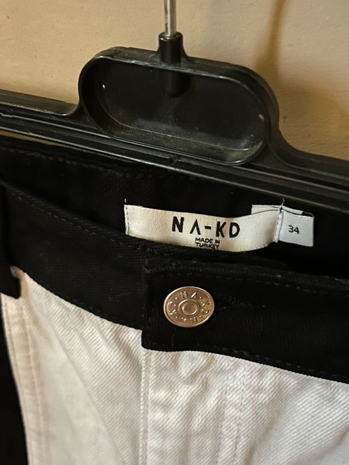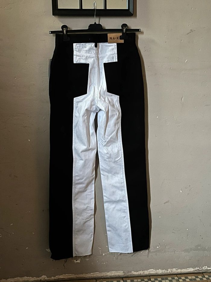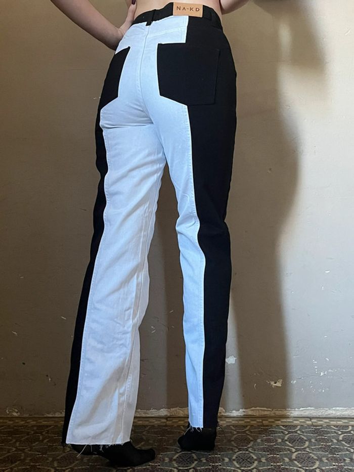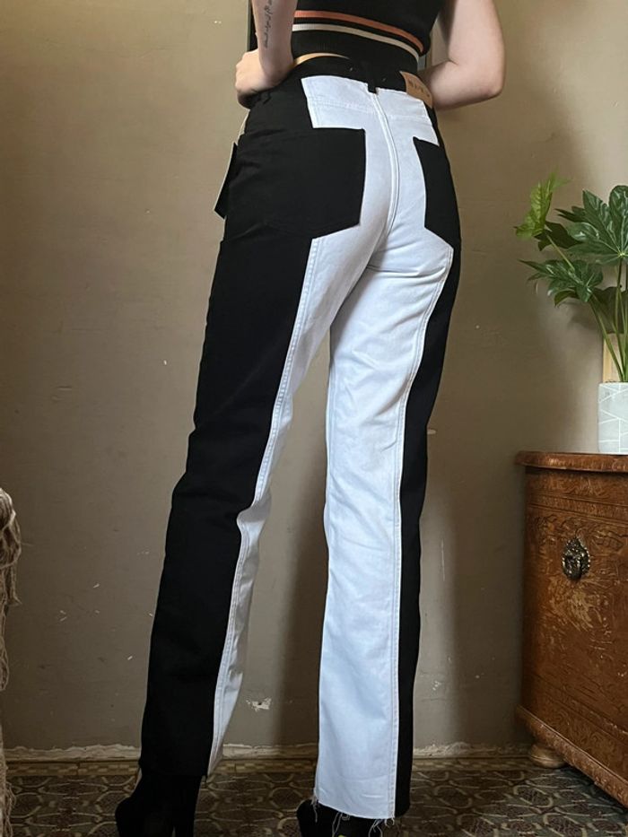 Pantalon jeans bi-color : noir et blanc, taille haute - photo numéro 3
