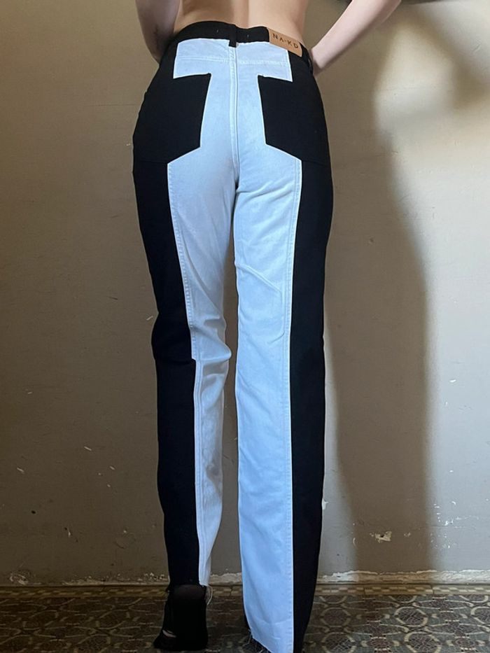 Pantalon jeans bi-color : noir et blanc, taille haute - photo numéro 6