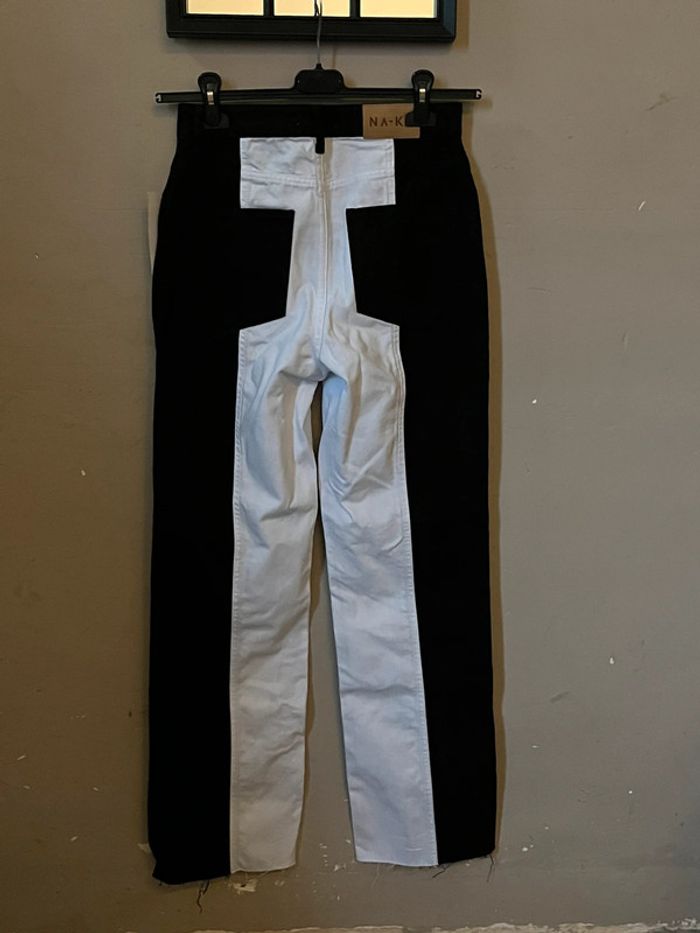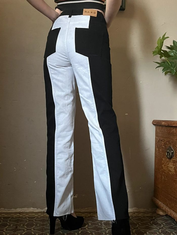 Pantalon jeans bi-color : noir et blanc, taille haute - photo numéro 2
