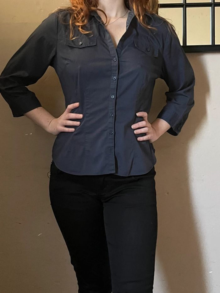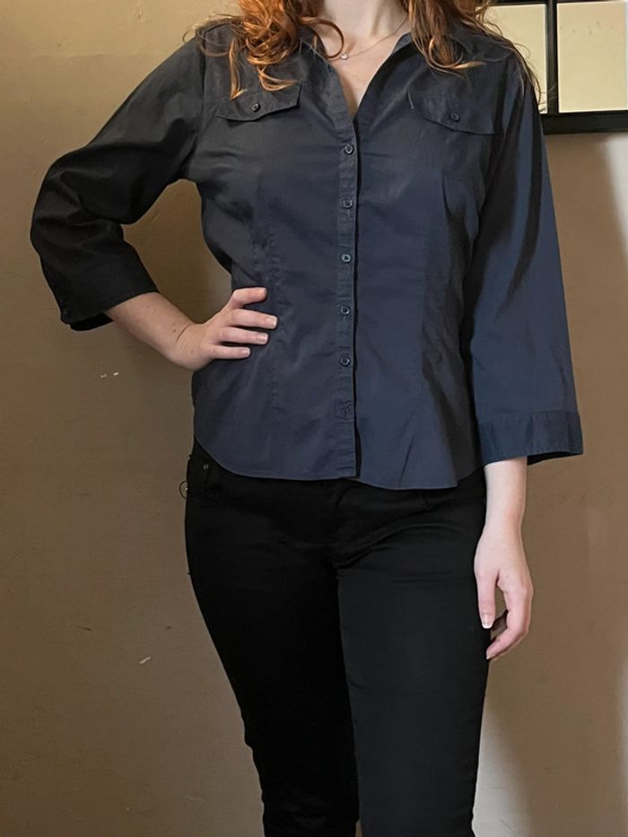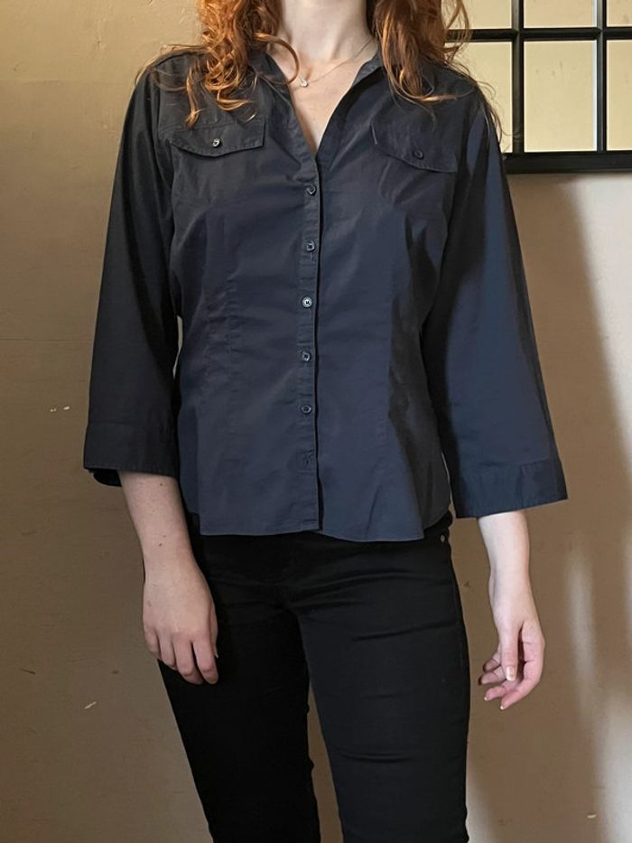 Chemise bleu marine cintré avec poches et manches 3/4 - photo numéro 1