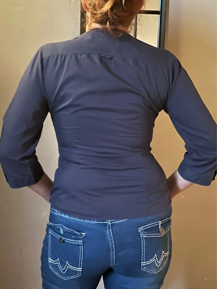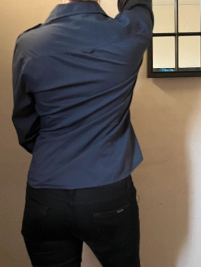 Chemise bleu marine cintré avec poches et manches 3/4 - photo numéro 4