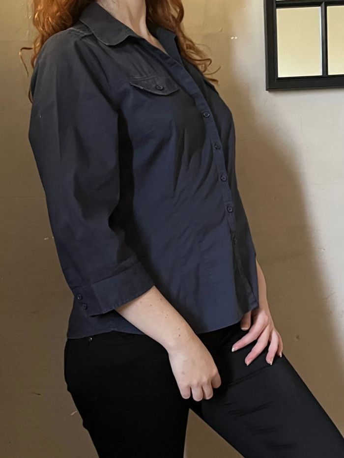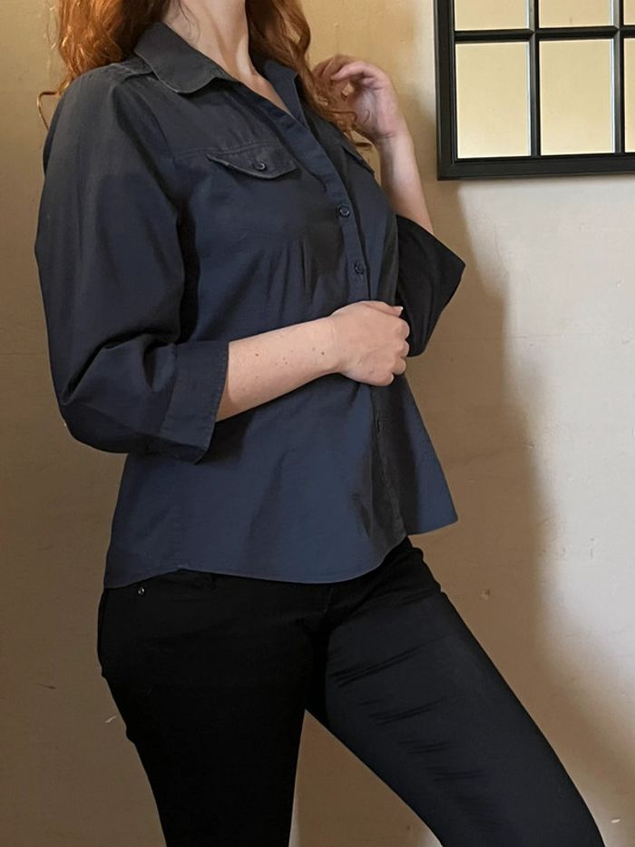 Chemise bleu marine cintré avec poches et manches 3/4 - photo numéro 2