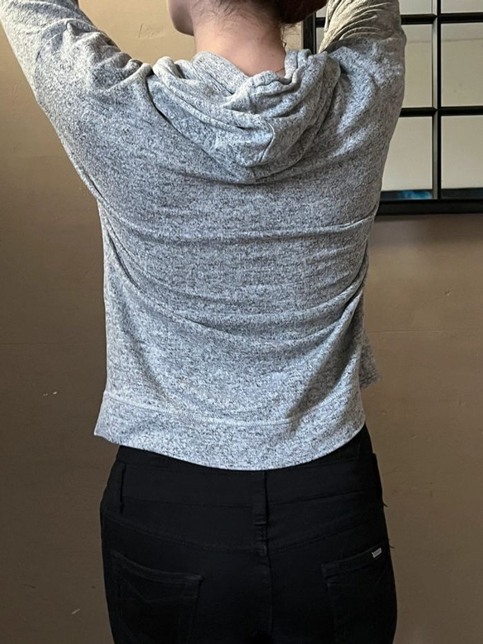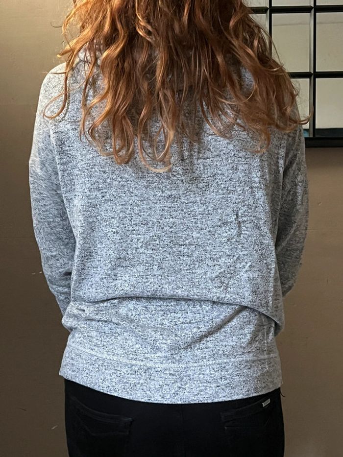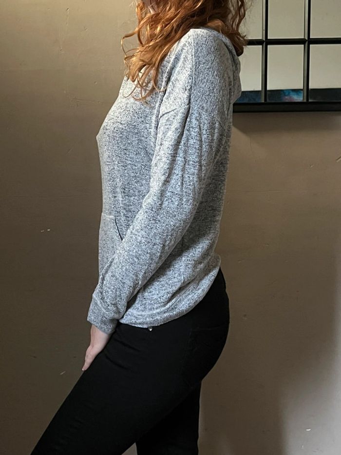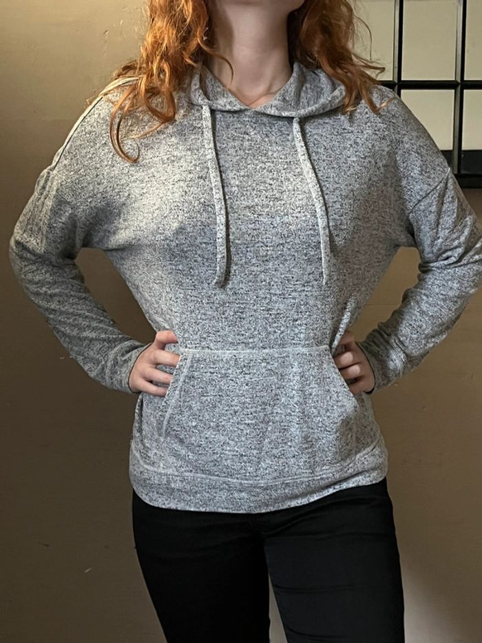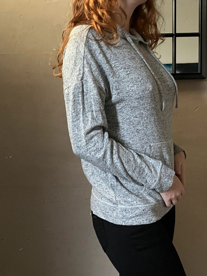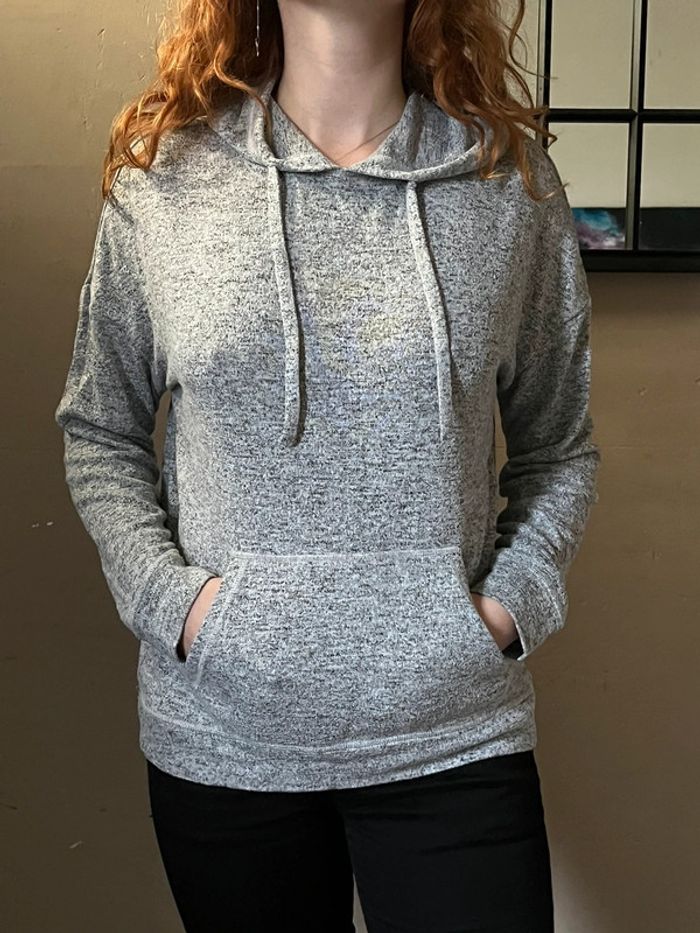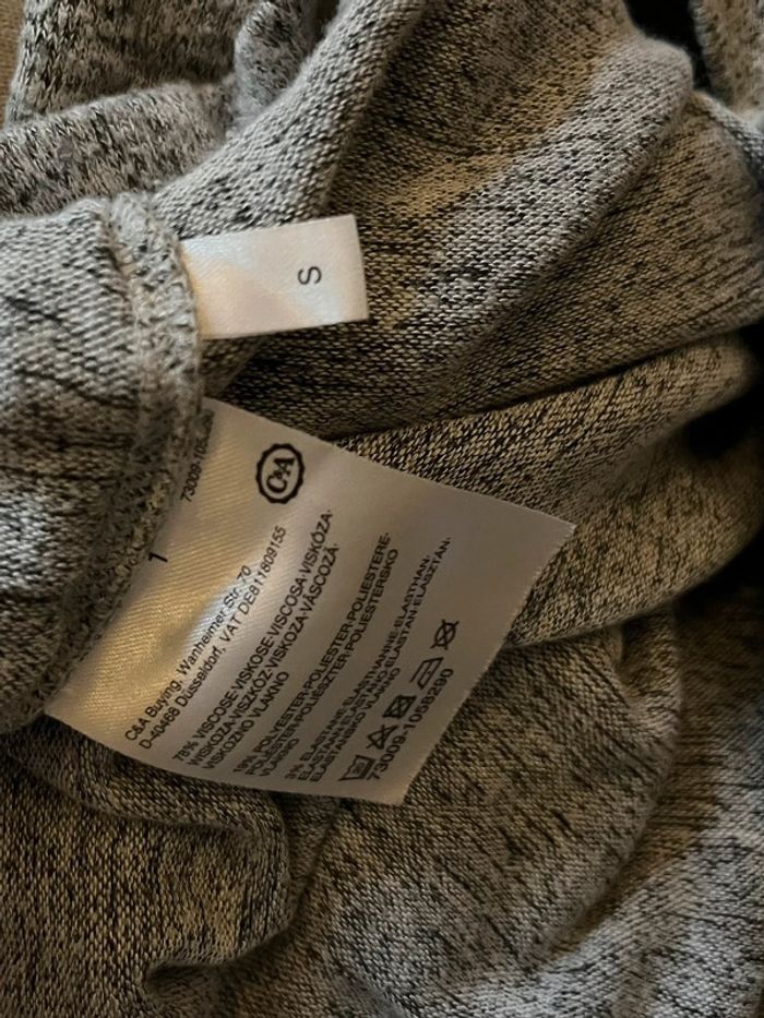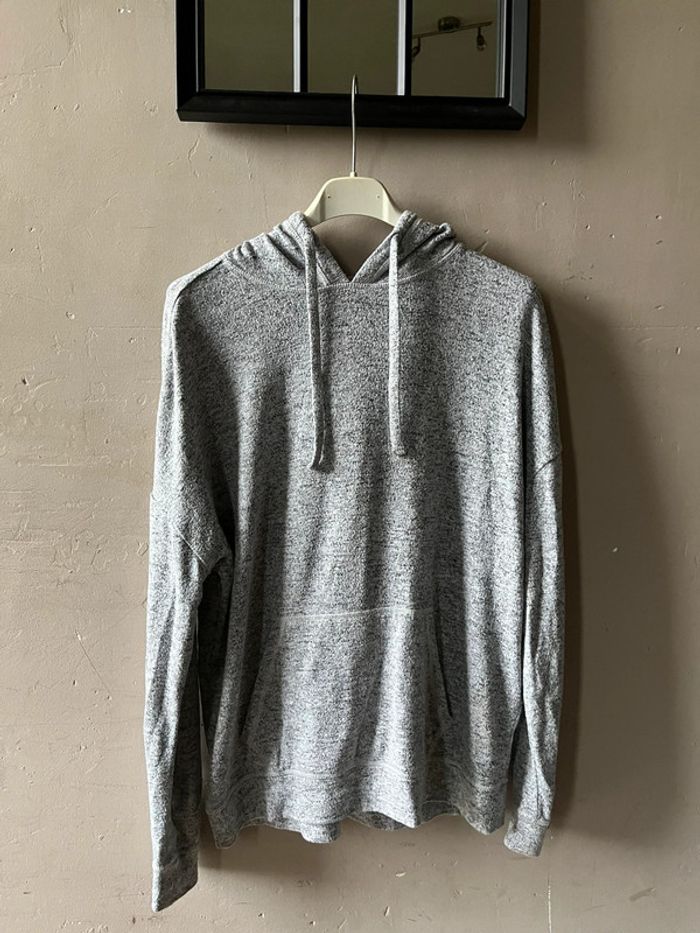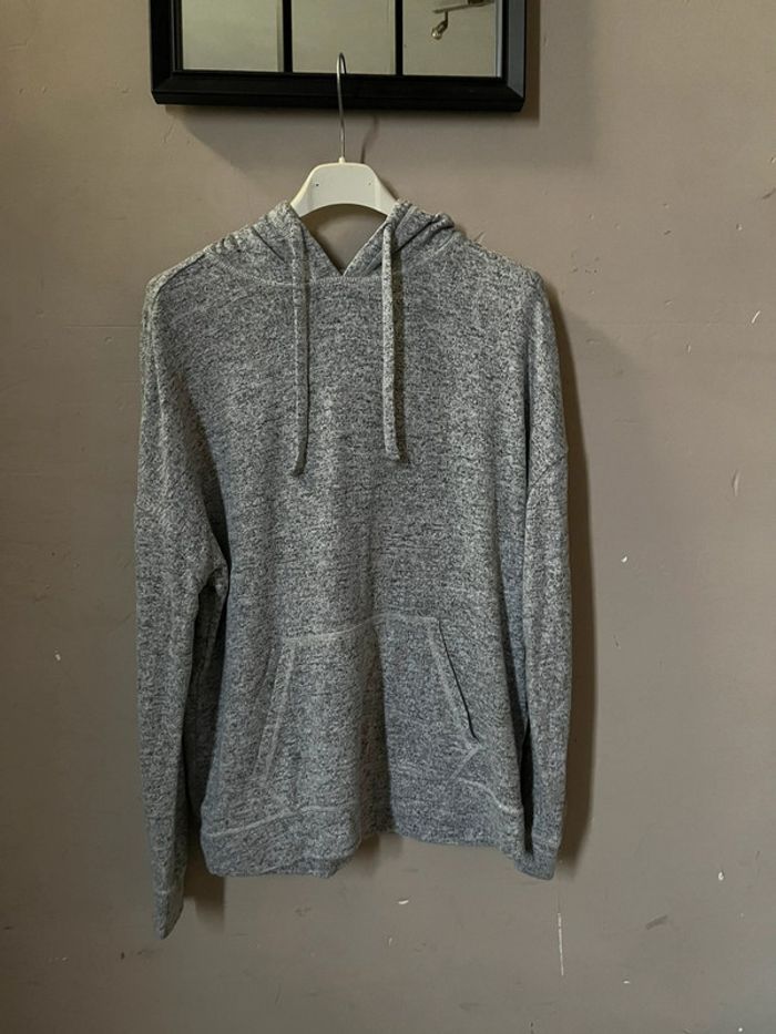 Sweat à capuche avec cordon - poche avant. Couleur gris clair - effet « tacheté » avec nuances de gris Matière douce et confortable - tissus pas très épais, léger. Pour moyenne saison. Peut être porté avec un t-shirt en dessous ou sans. Taille S, peut convenir à un M (je porte du S/M). Marque : Yessica C&A Très bon état, pas de signe d’usure. Porté quelques fois (environ 10x)