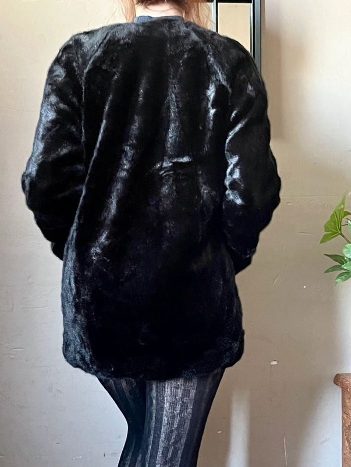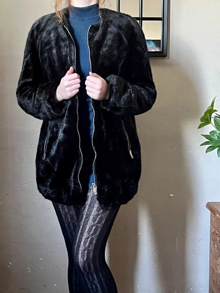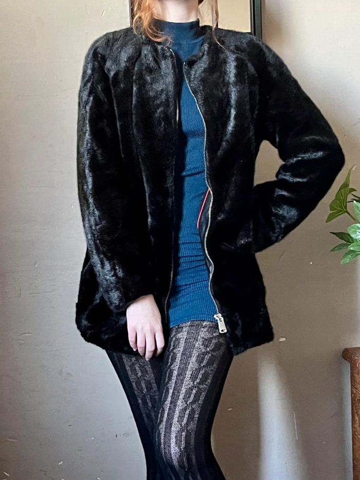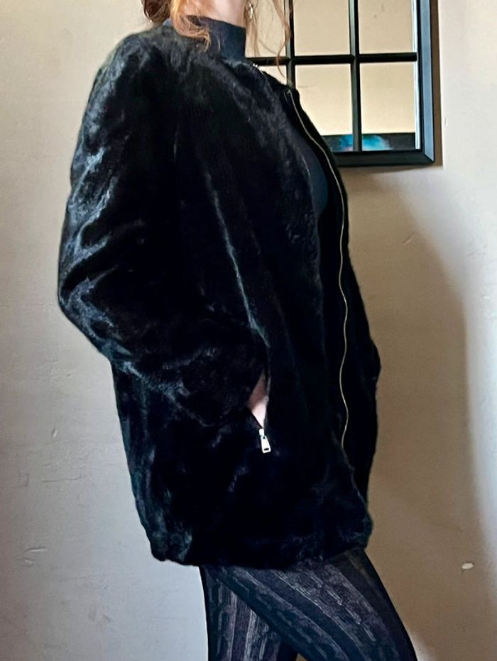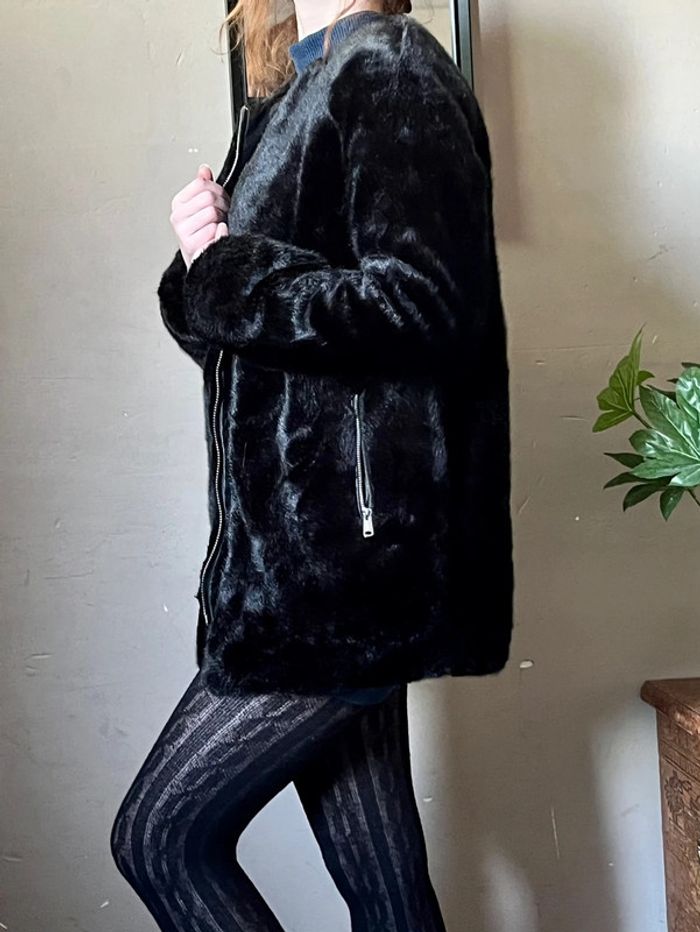 Manteau veste confortable en fausses fourrures avec fermeture éclair (à zip) - couleur noir 2 poches sur les côtés avec fermeture éclair argenté. Contours intérieur en faux cuir et bande rouge. Taille S taille très bien (je porte de S/M, très légèrement serré sur moi). Marque : Collection Pimkie Jamais porté (il reste le petit plastique de l’étiquette), mais resté longtemps stocké en lieu sûr. Pas de signe d’usure en parfait état.