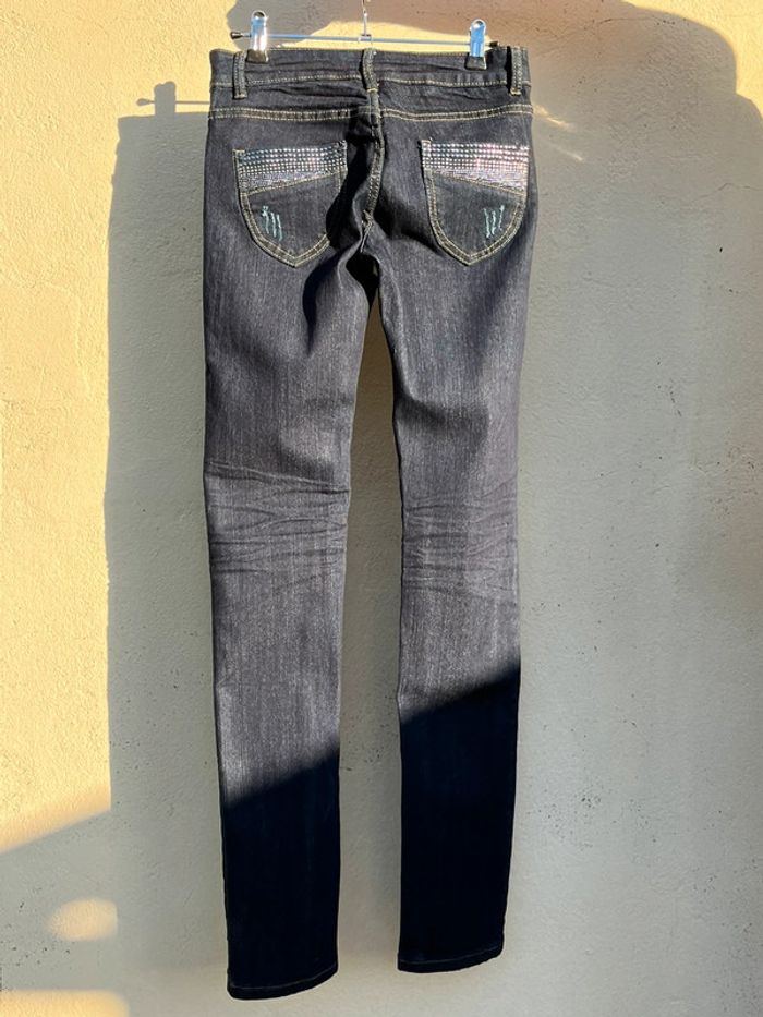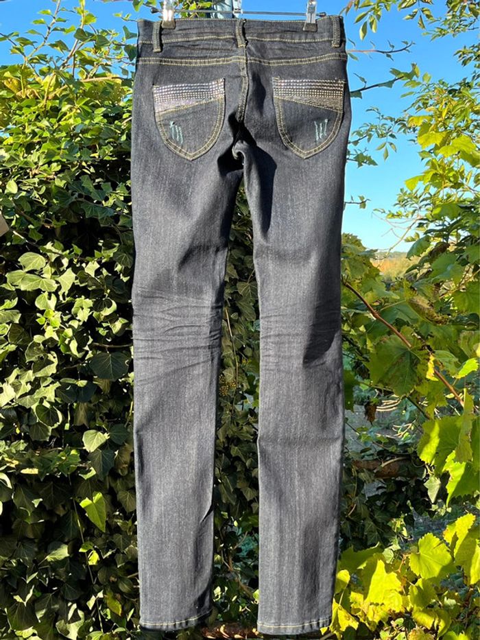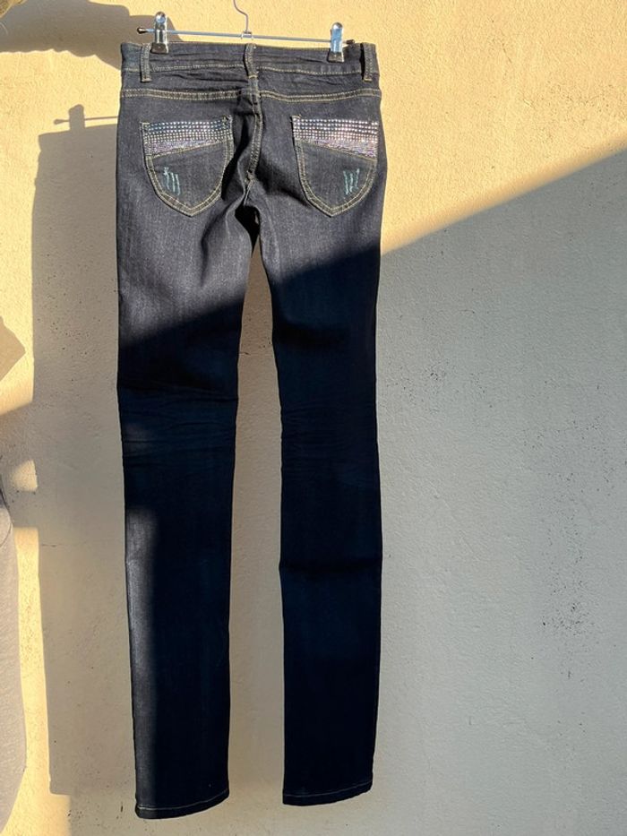 Jean taille basse skinny marine noir avec strass - photo numéro 3