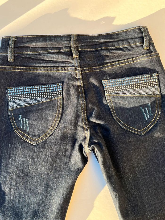Jean taille basse skinny marine noir avec strass - photo numéro 6