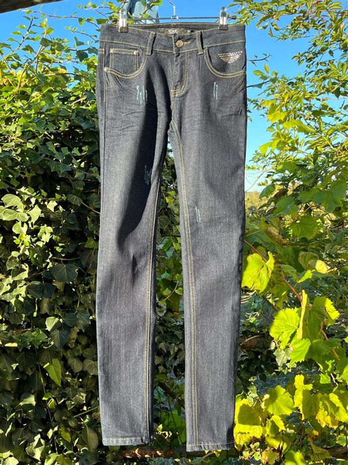 Jean taille basse skinny marine noir avec strass - photo numéro 1