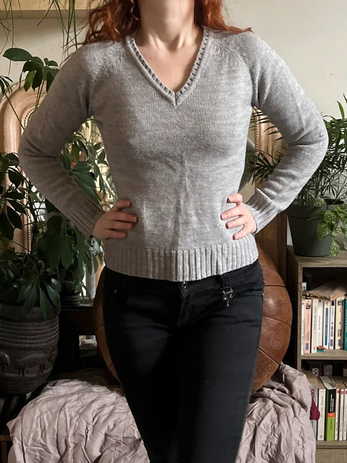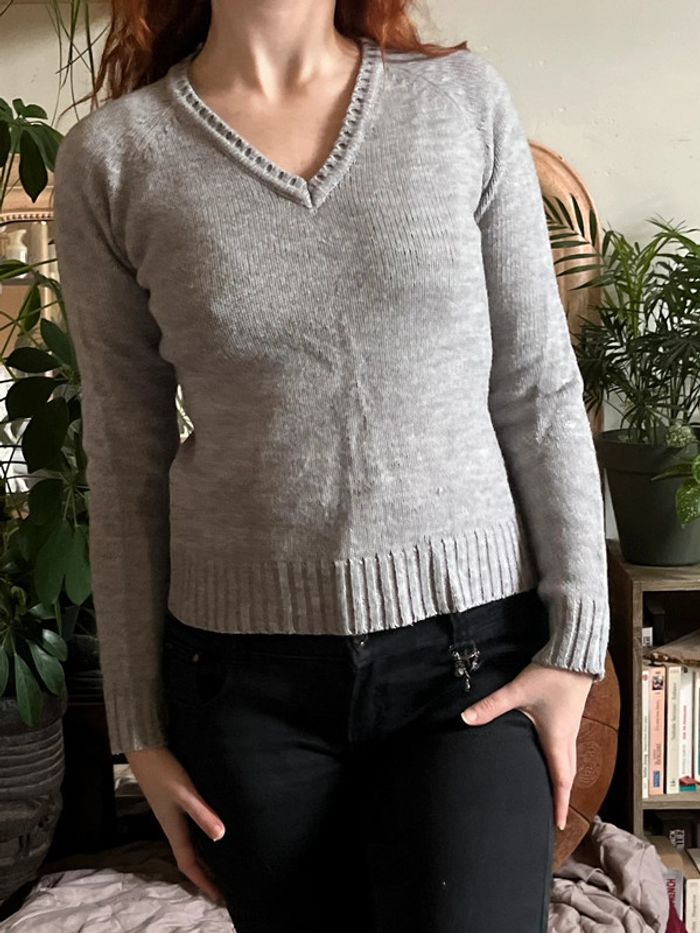 Pull d’hiver col V en laine - gris clair - photo numéro 1