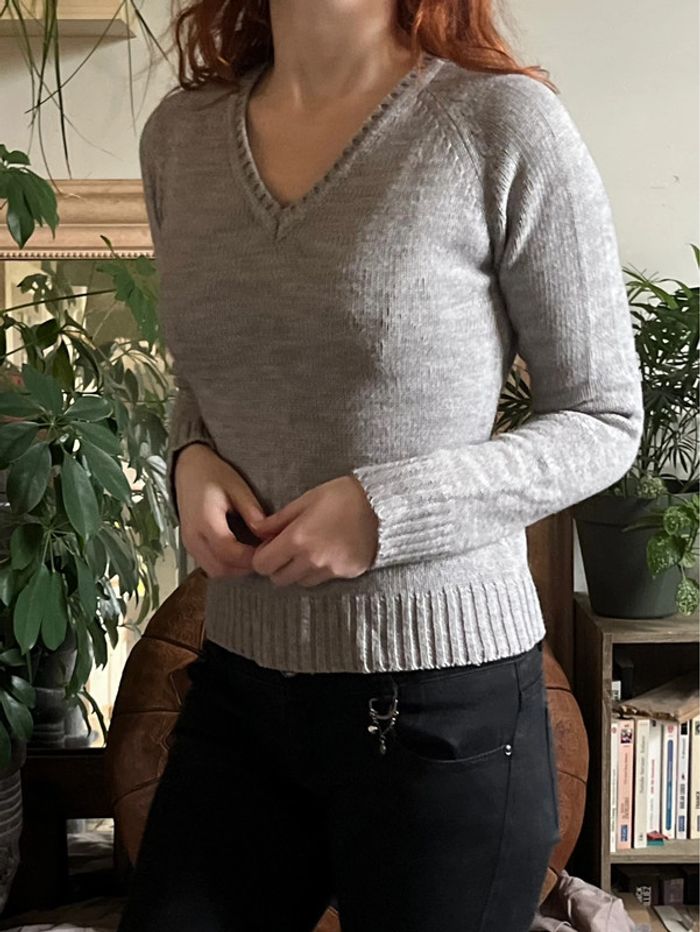 Pull d’hiver col V en laine - gris clair - photo numéro 13