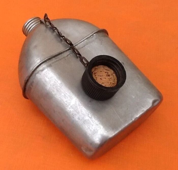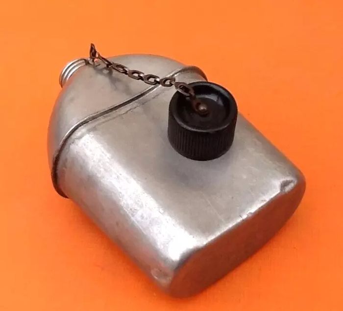 Gourde / Bidon WWII Armée Américaine aluminium U.S Vollrath 1943 Hauteur : 185mm Longueur : 120mm Largeur : 60mm Poids : 280grs