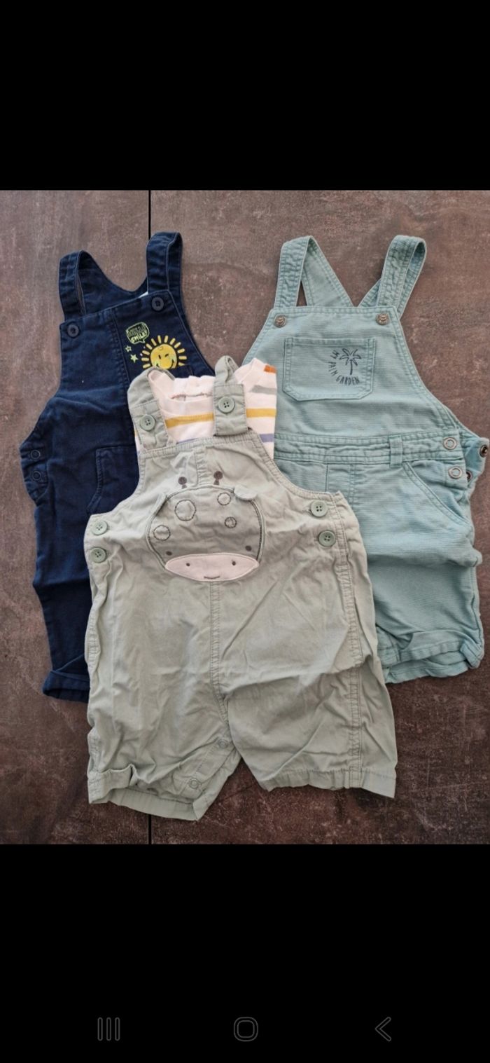 3 salopettes d'été pour garçon en 12mois, dont une avec t-shirt assorti.
