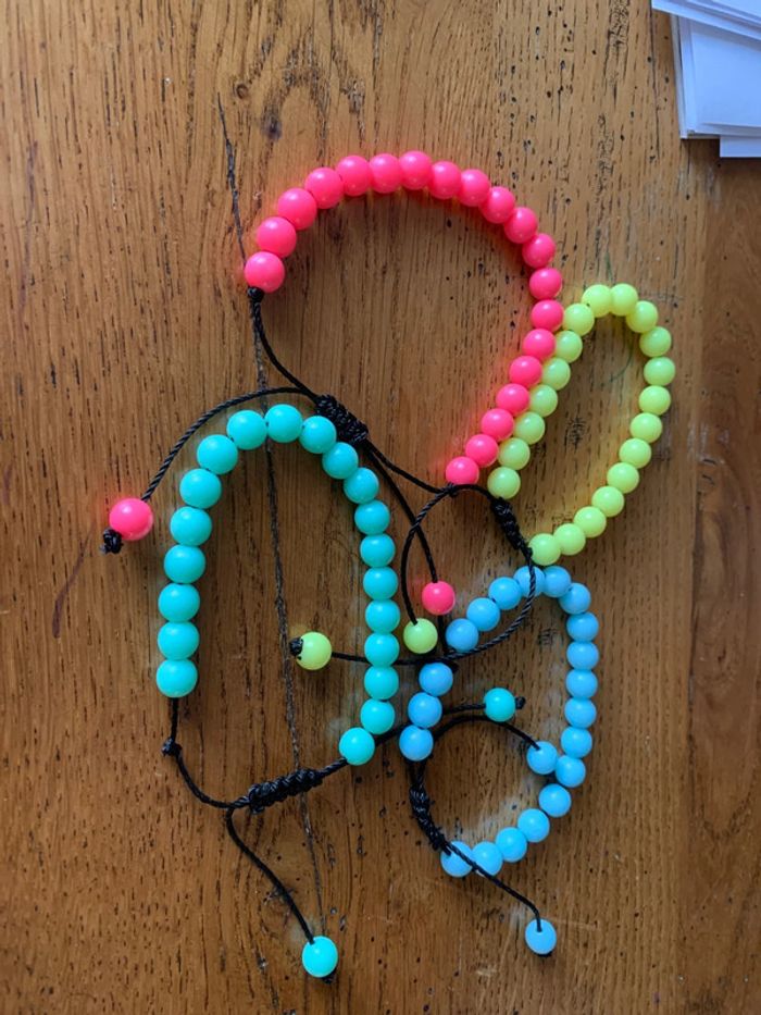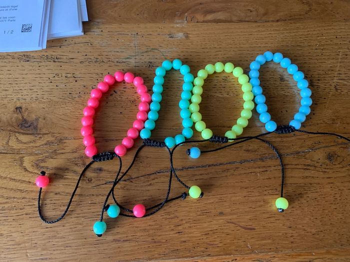 Bracelets à portée selon vos goûts et vos tenues. Idéal aussi pour la piscine, bord de plage Longueur réglable Lot des 4 bracelets 12€