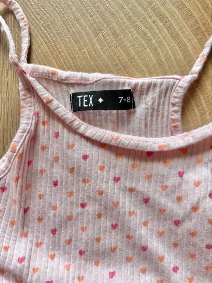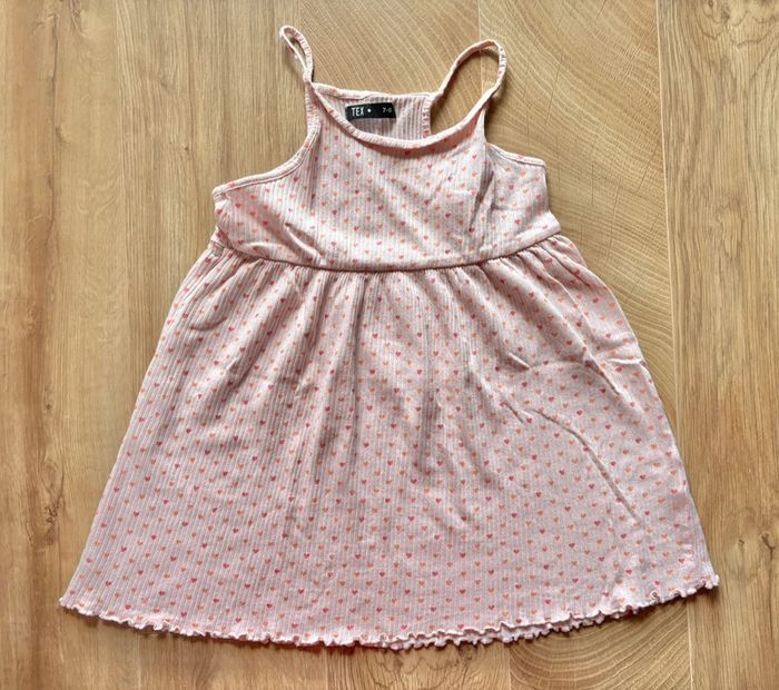 Robe à fines bretelles Rose avec imprimé coeurs Taille: 7/8ans indiqué mais taille petit plutôt 7ans Marque: Tex