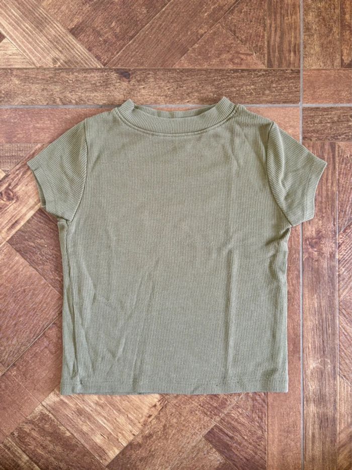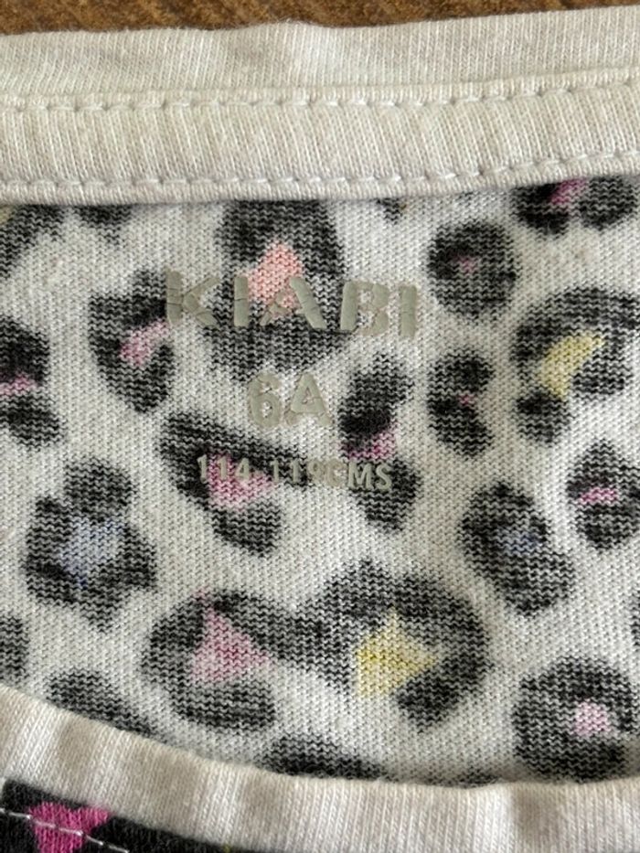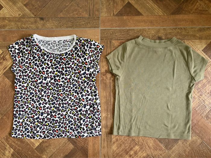 Tee-shirts manches courtes Un blanc imprimé léopard multicolore Un côtelé couleur kaki Taille: 6ans / 114-119cm Marque: Kiabi