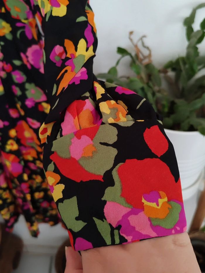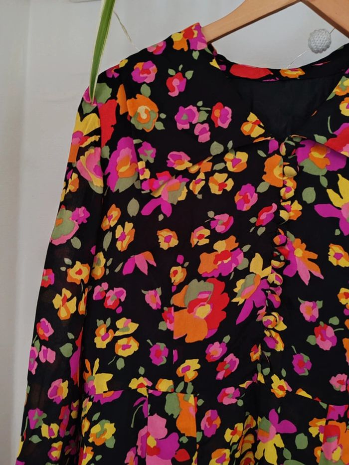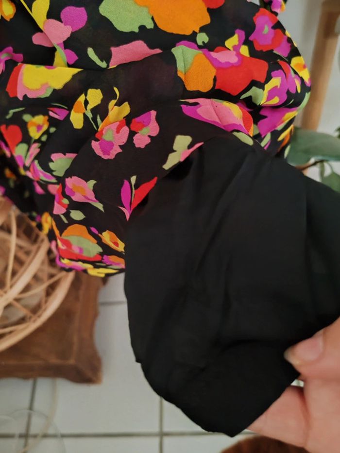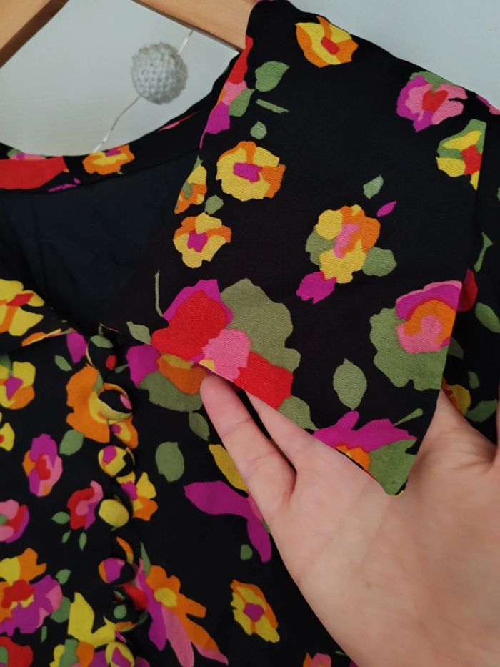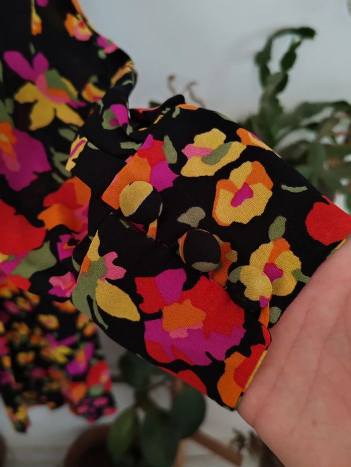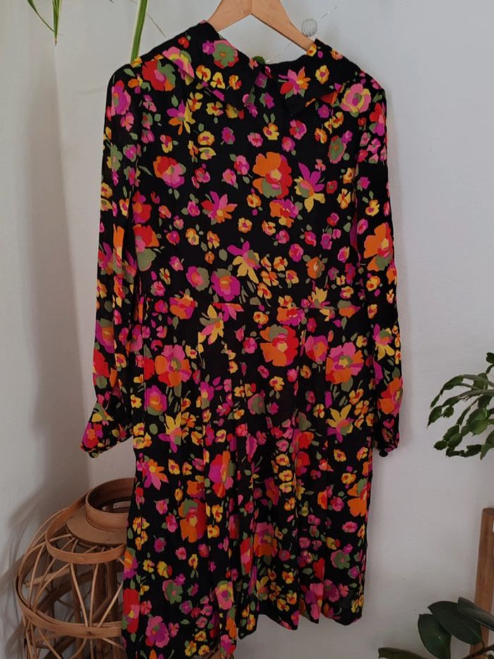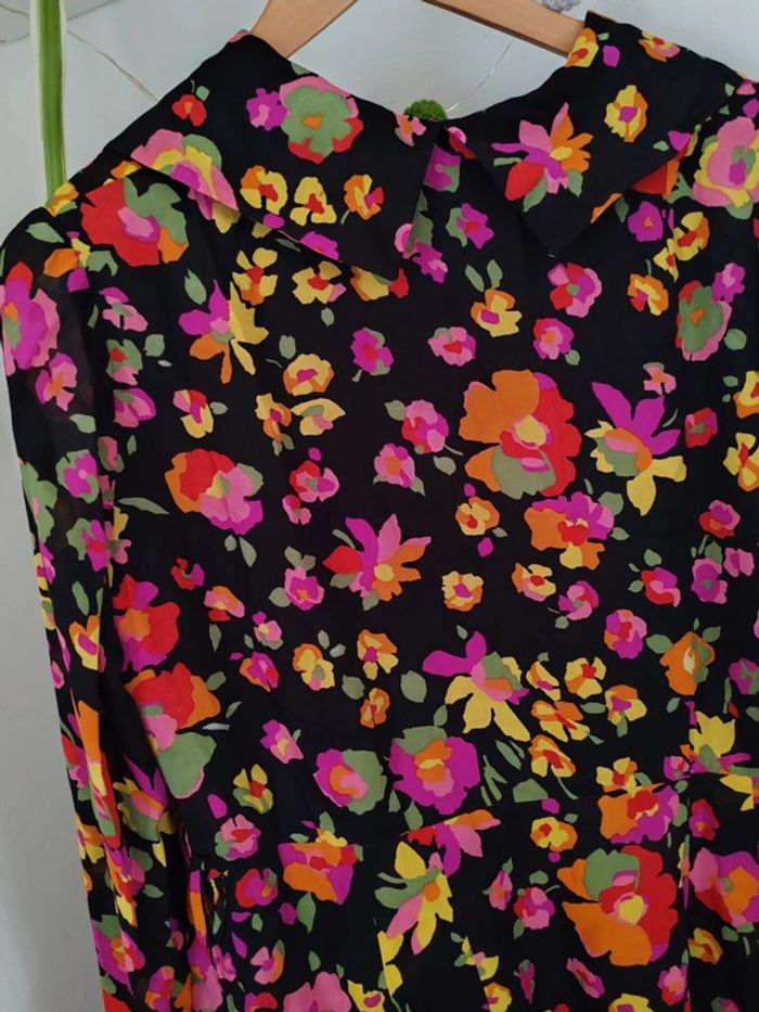 Robe noire à fleurs oranges et roses vintages - photo numéro 13