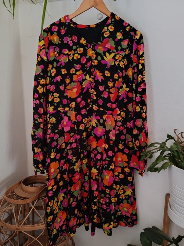 Robe noire à fleurs oranges et roses vintages - photo numéro 1