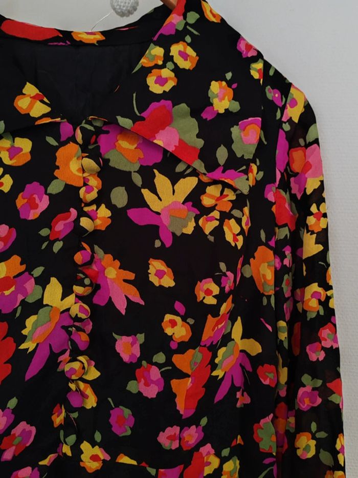 Robe noire à fleurs oranges et roses vintages - photo numéro 7