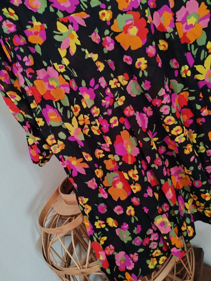 Robe noire à fleurs oranges et roses vintages - photo numéro 2