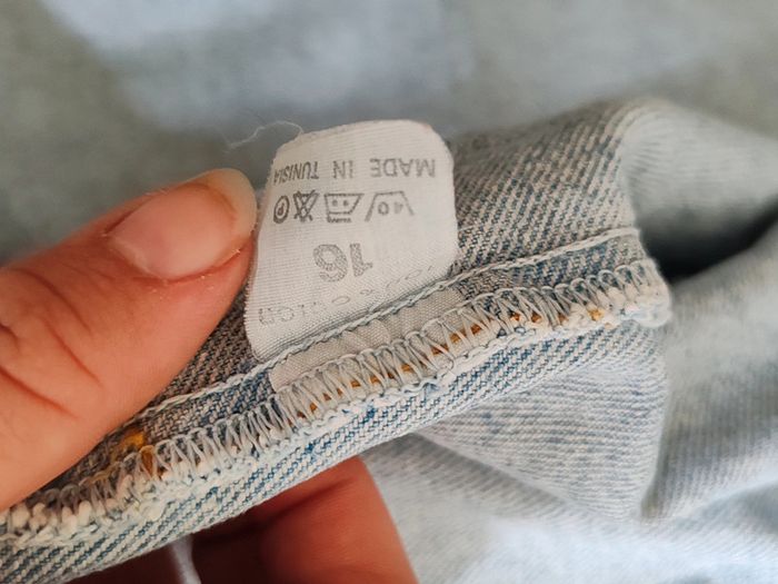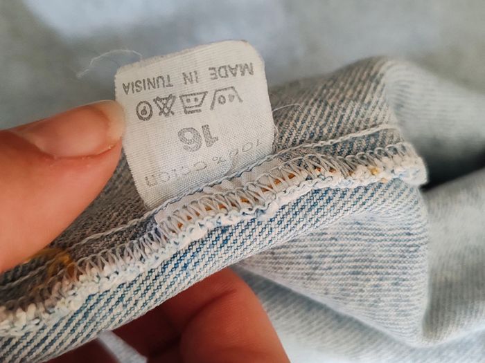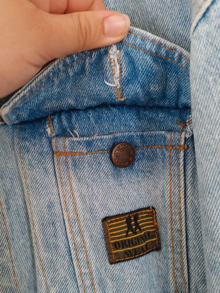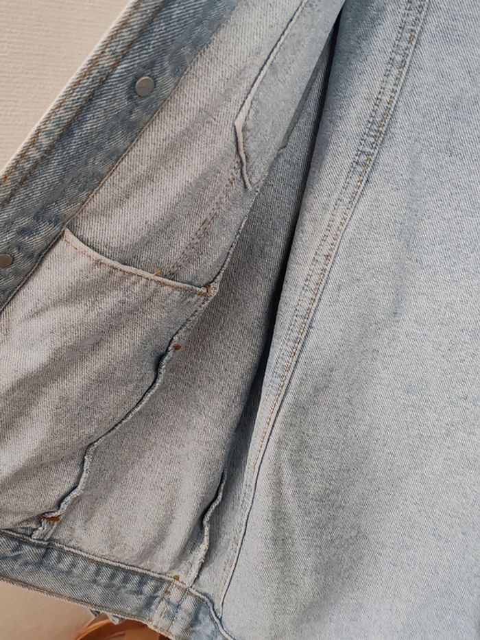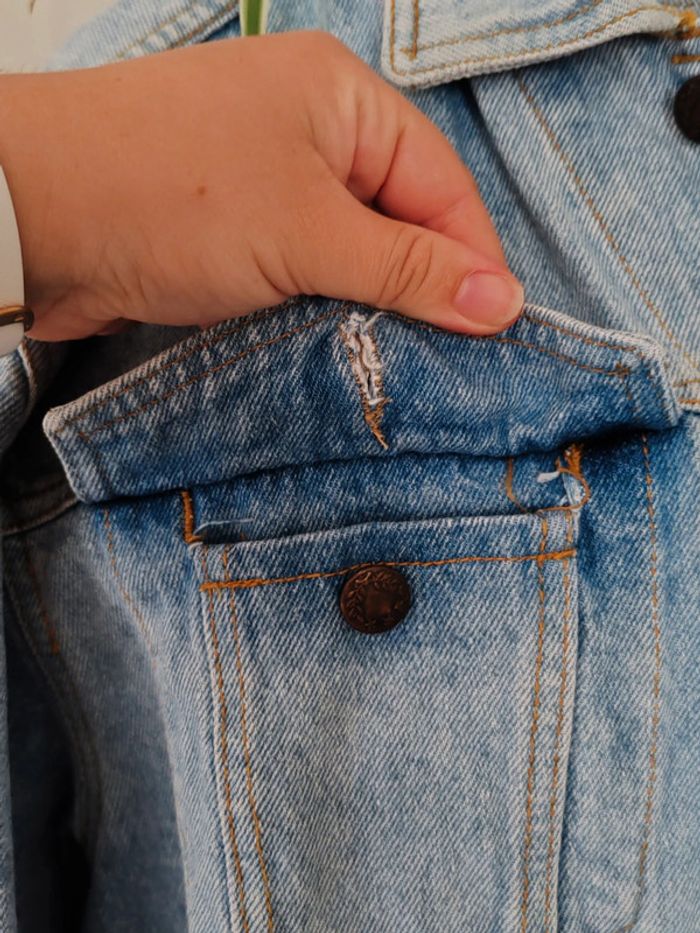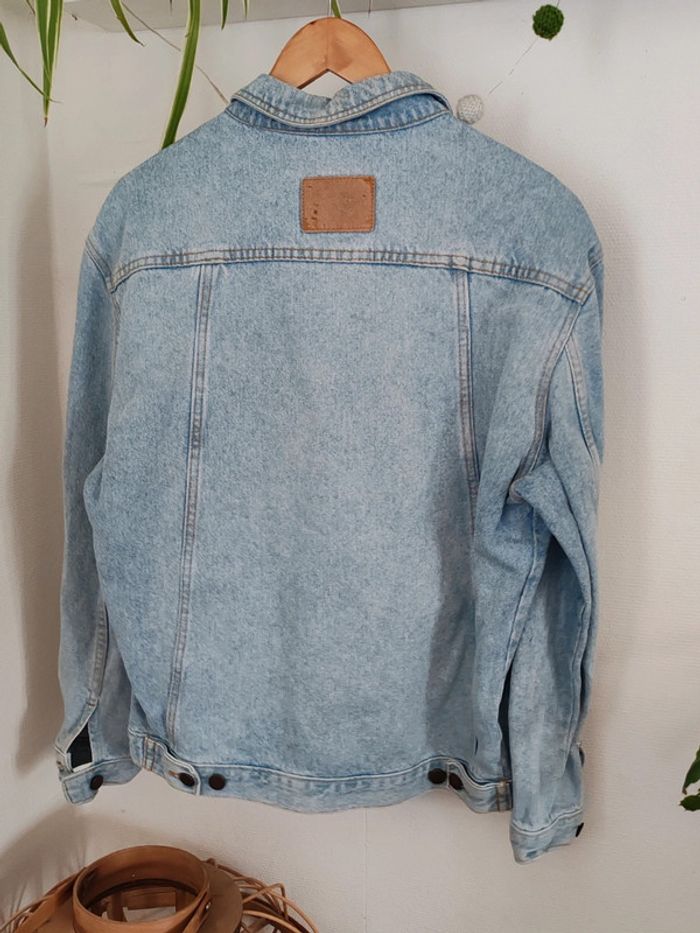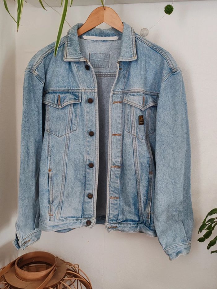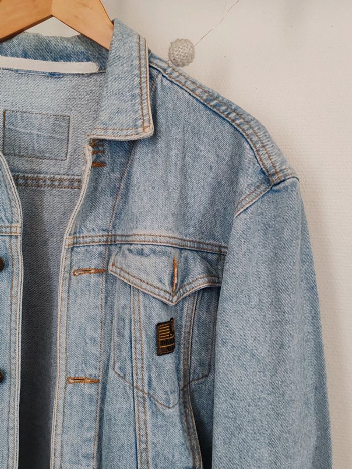 Veste en jean bleu clair En bon état L'étiquette marron dans le dos a été effacée avec les frottements / lavages Vintage ➡️ #ursullabuffayvetements