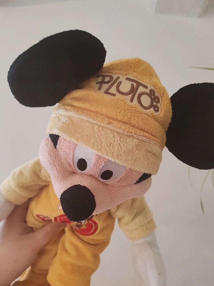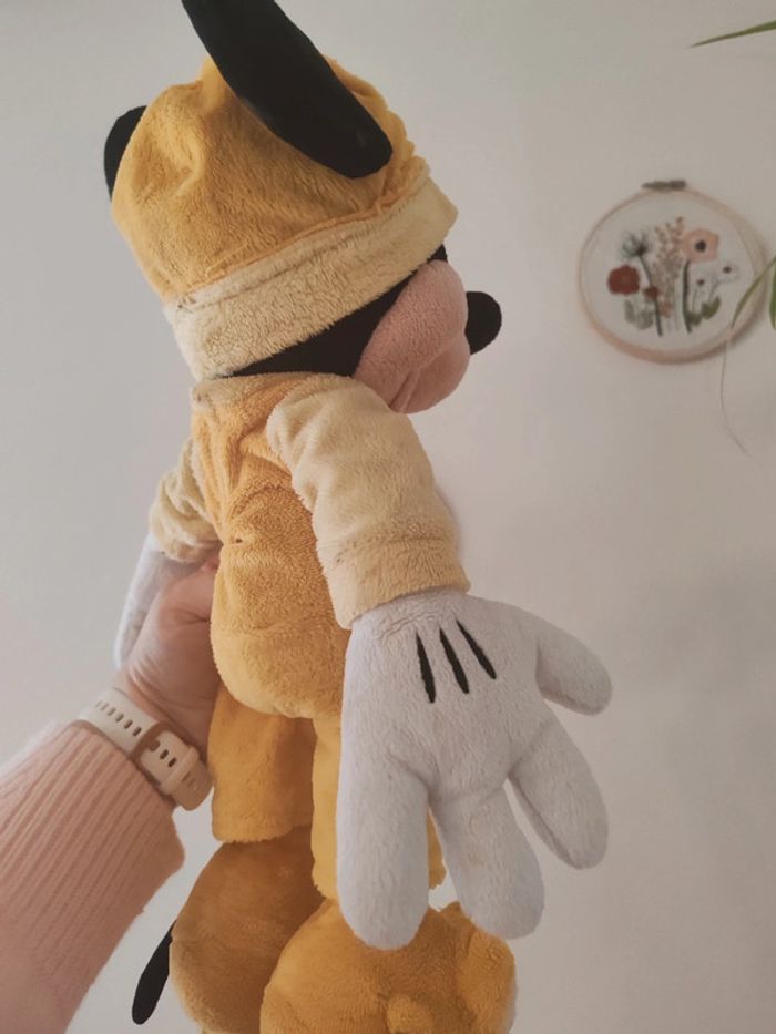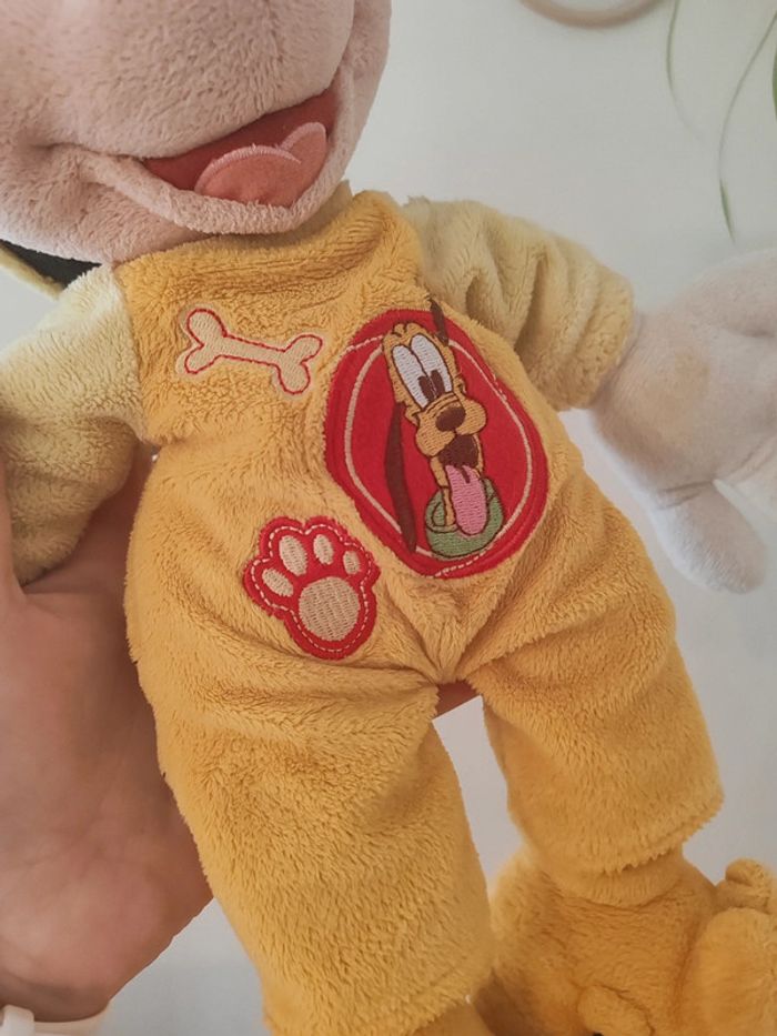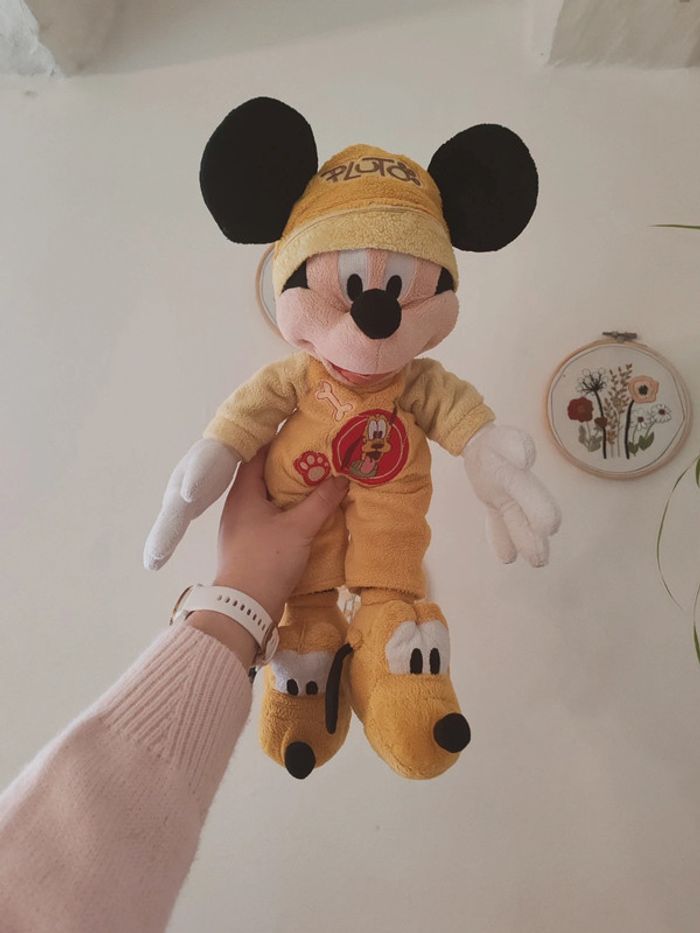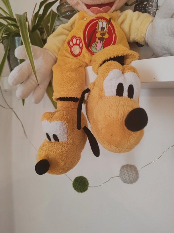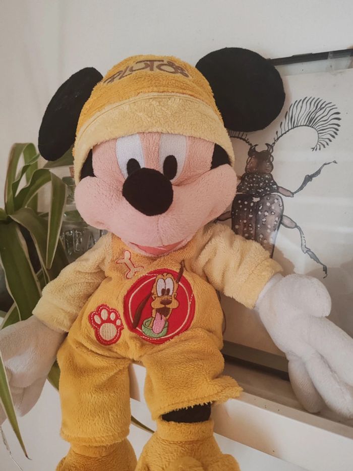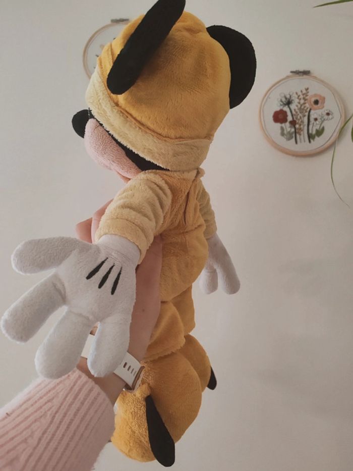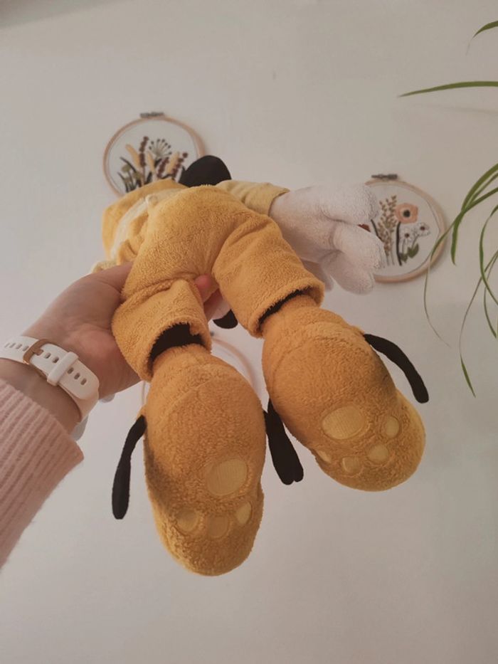 Peluche Mickey déguisement pluto jaune Avec ses petits chaussons tête de pluto Très bon état général Disney ➡️ #ursullabuffaydisney #ursullabuffaypeluches