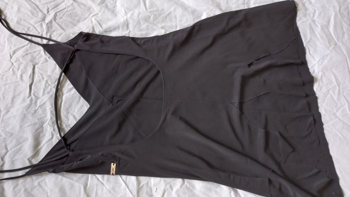 Haut noir E. LOCO Forme dos nu Fines bretelles Tissu très fluide Taille XS #T34_imoddeco