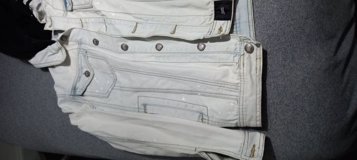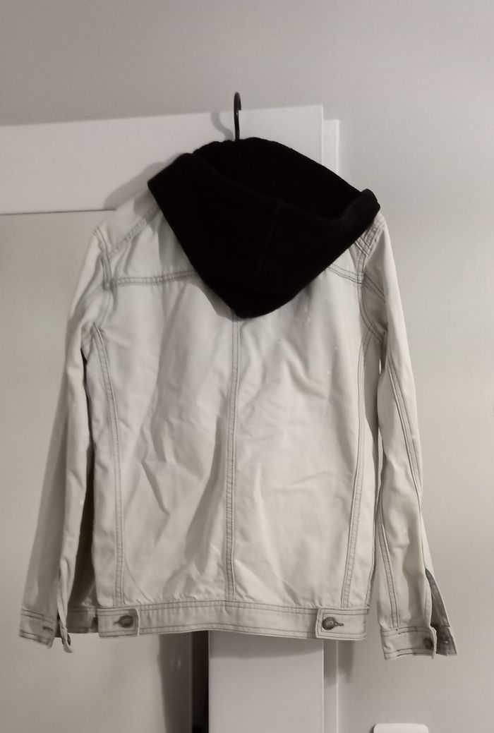 Blouson jean Sixth June Avec capuche noire Coloris bleu très clair, presque blanc Taille XS Longueur 62 cm Longueur manches 61 cm Largeur épaules 42 cm Très peu portée 80 % coton 20 % polyester Très bon état #T34_imoddeco La remise pour lot ne s'applique pas sur cet article #homme_imoddeco