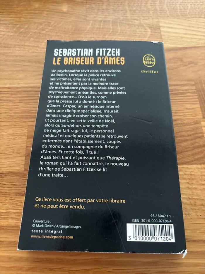Roman le briseur d’âmes Sebastian Fitzek En bon état Pour mes autres livres, cliquez : #fiiipe_livres #barboteuse #combinaison #grenouillere #pyjama #jogging #sarouel #legging #pantalon #vetements #lot #short #salopette #tunique #blouse #debardeur #tshirt #robe #jupe #bloomer #pull #coton #gaze #laine #velours #été #hiver #misaison #livres #livresbebe #jouets #educatif #transat #chapeau #casquette #lange #sweat #liberty #fleurs #mariniere #bodies #body #manchescourtes #mancheslongues #3moisgarcon #sergentmajor #dupareilaumeme #okaidi #obaibi #vertbaudet #zara #tapealoeil #cyrillus #jacadi #bonpoint #tartineetchocolat #bonton #franginfrangine #natalys #hm #kiabi #orchestra #primark #catimini #ikks #arseneetlespipilettes #ralphlauren #marese #dpam #jeanbourget #mango #monoprix #boutchou #petitbateau #petitprix #petitbeguin #lolapalacios #disney #livresebastianfitzek